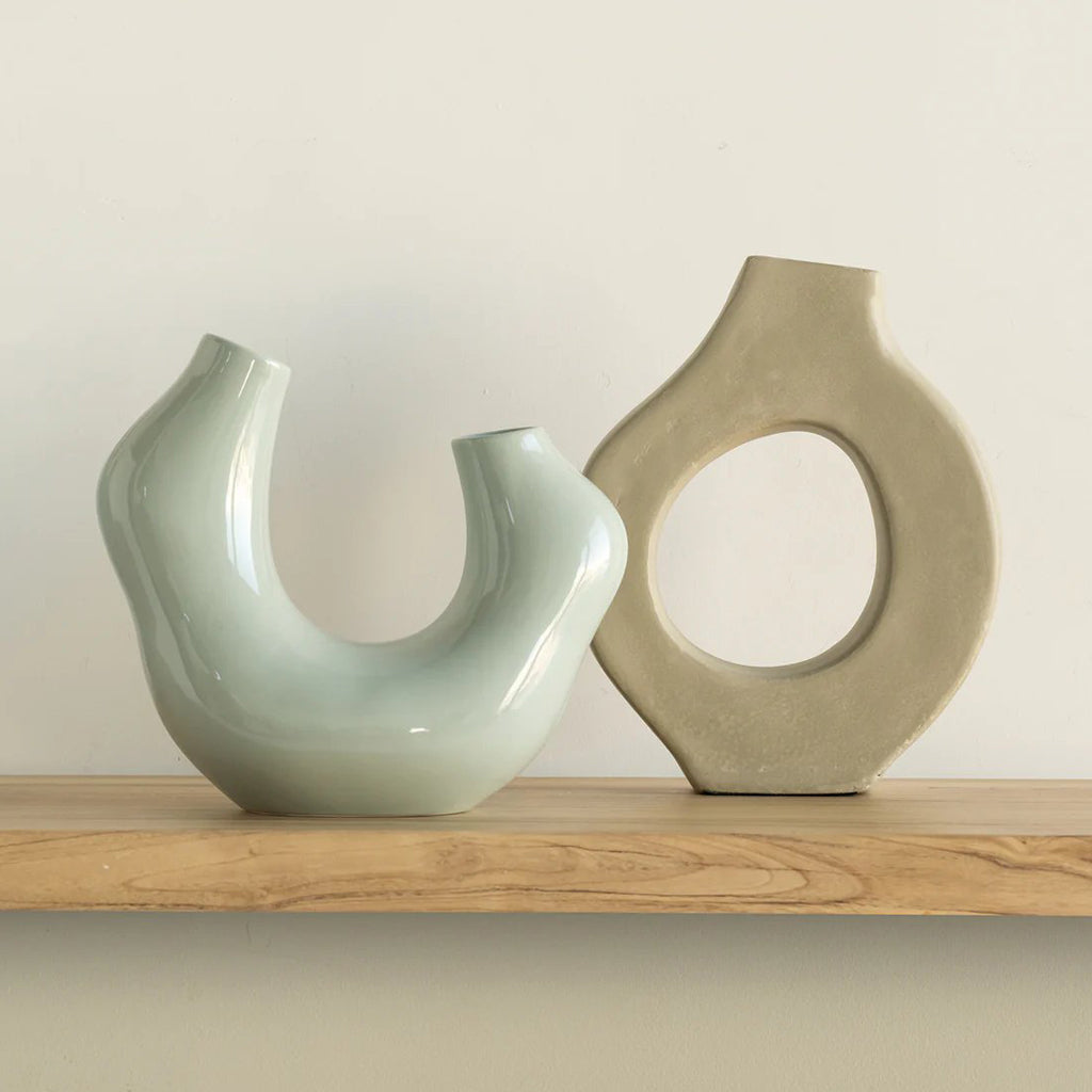 Walking the fine line between function and art, Urban Nature Culture’s Felice vase is one of the many, stunning balancing acts between the two. Handmade in Portugal, and following soft, organic lines in a playful dichotomy, it’s a prime example of intuitive design and biomorphic art. Given a shiny sea foam glaze, it makes a fine piece of deco art, as well as a flower favourite.