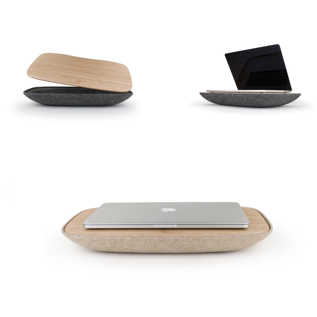 Suitable for a laptop up to the size of 15" with plenty of room to use a mouse, the Lapod is the kind of product that makes you wonder how you ever lived without it before. Made from sturdy, sustainable materials that look good, feel good, and can even store your extra bits and pieces inside them!