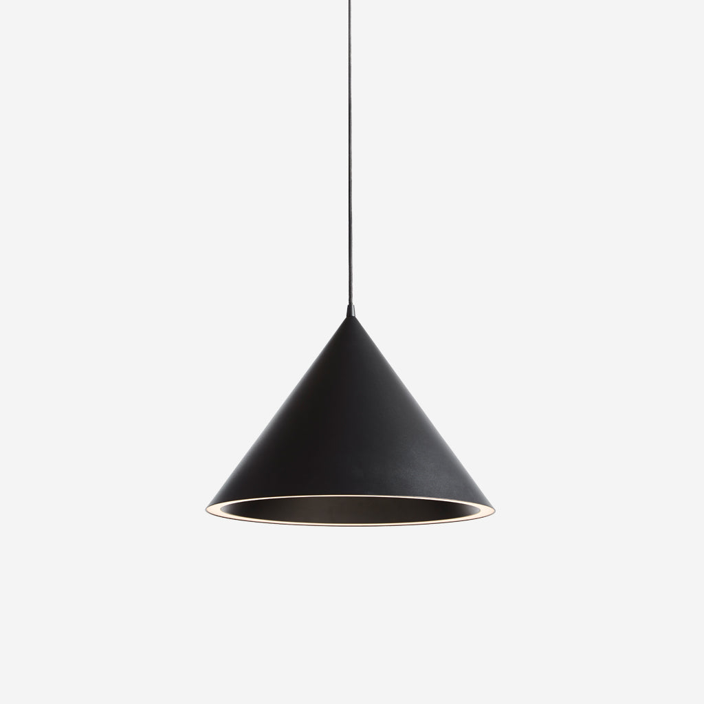 The Annular pendant is a modern interpretation of the classic cone pendant. It pairs two primary forms; a conical shade paired with a perfect ring of light at the perimeter. Annular is a result of rethinking the light. The innovative use of led makes no bulb visible creating a clean expression. The cone is evocative of a classic pendant form while the ring-shaped light source is boldly graphic and resolutely contemporary.