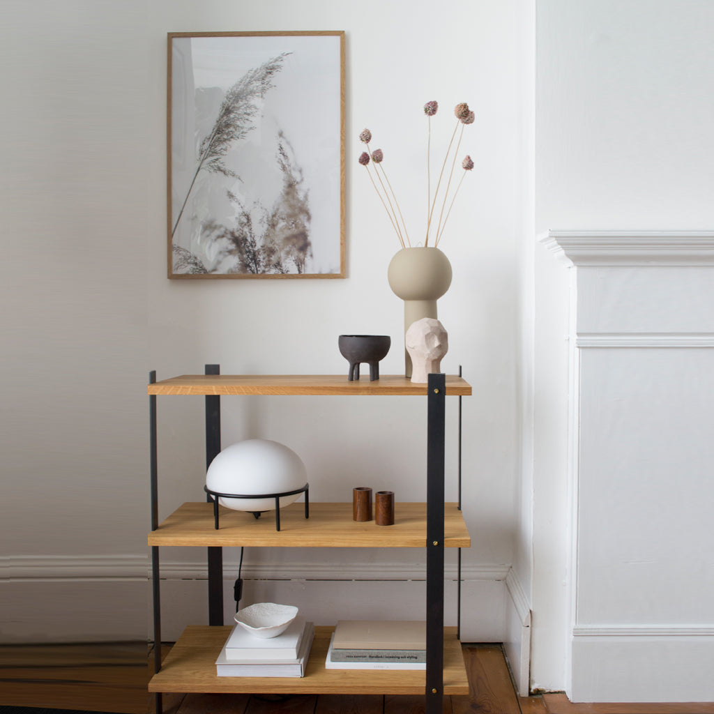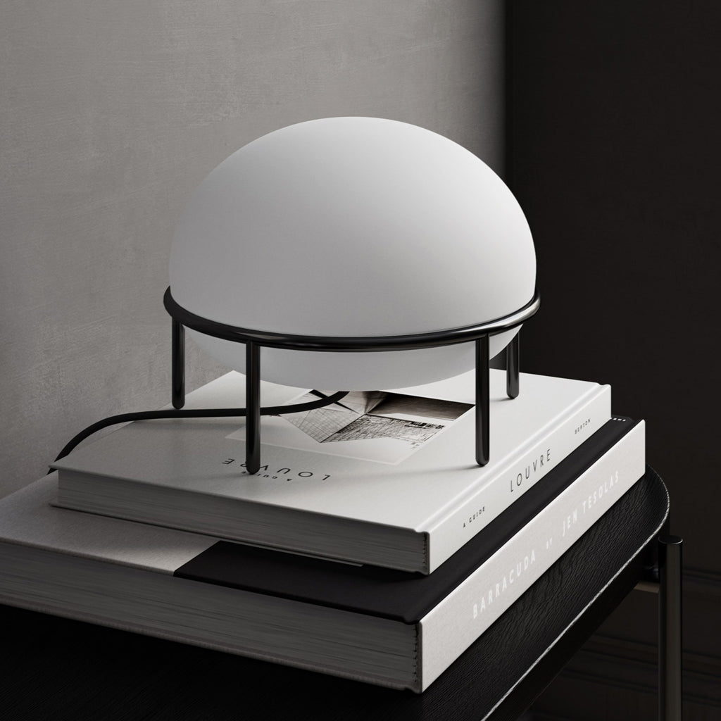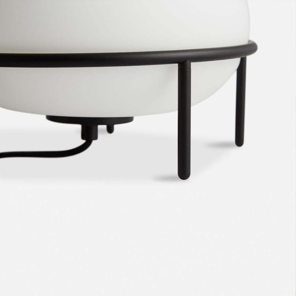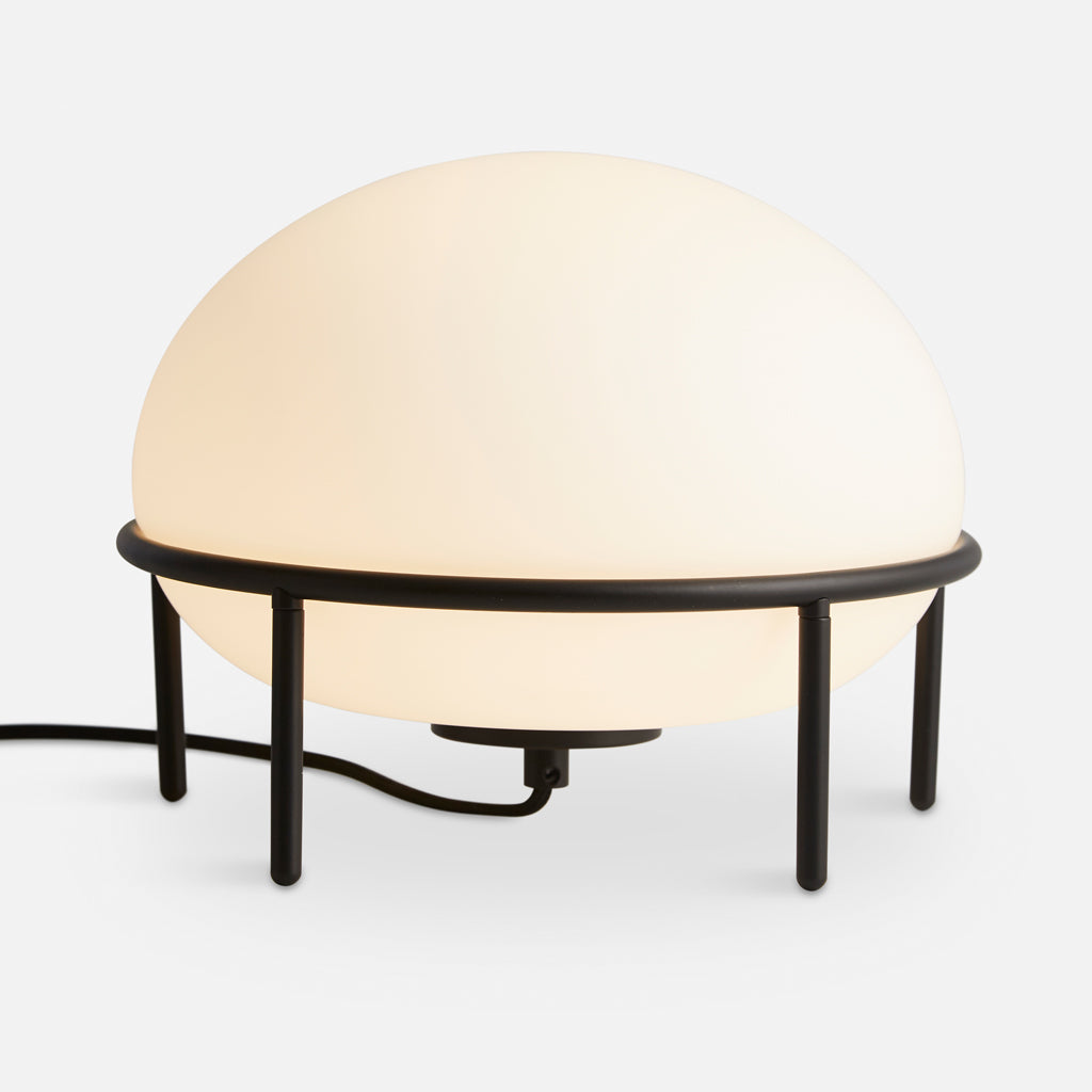 Pump is inspired by hot air balloons and the idea of a luminaire lifting off the ground. Floating in the air. The light tubular steel structure symbolises the propellant of a rocket, accentuating the effect of levitation of the shade. With its soft opal glass, Pump table lamp is ideal for smaller spots and setups where a pleasant light is needed. Whether that be on the desk, in the shelving system or on the window ledge.