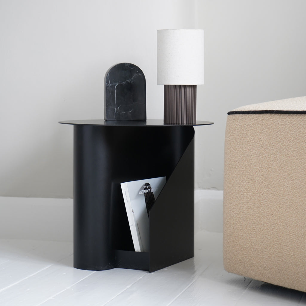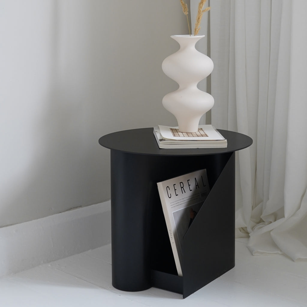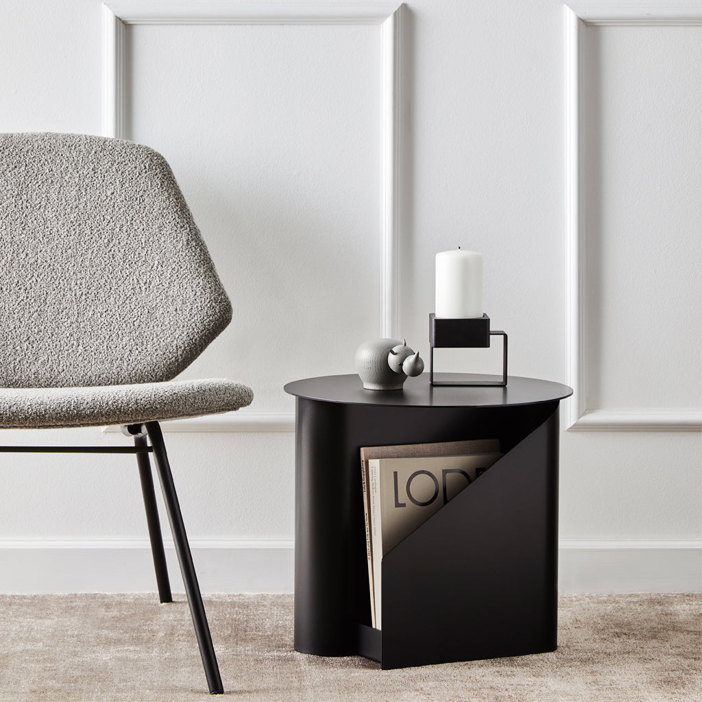 The Sentrum side table follows the principle of simplicity as it has been stripped from all unnecessary elements. What is left is a strong base and geometrical expression with pure functionalities. The S-shaped construction makes the centre of attention and creates two spaces for storage on both sides to enhance the usability of the side table - ideal for magazines and books.