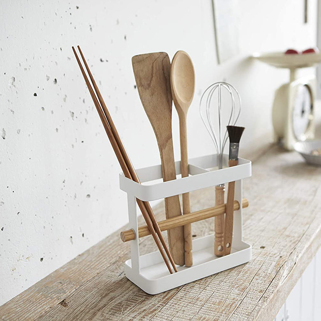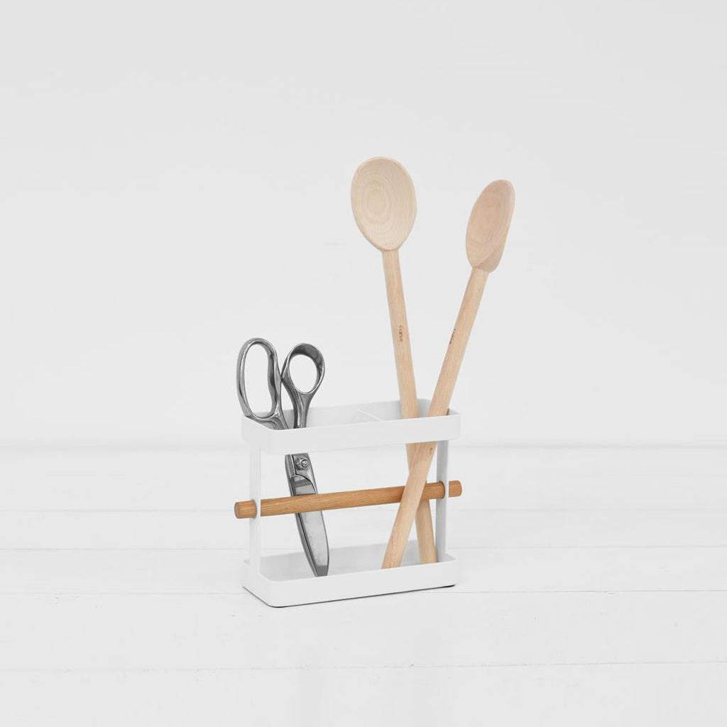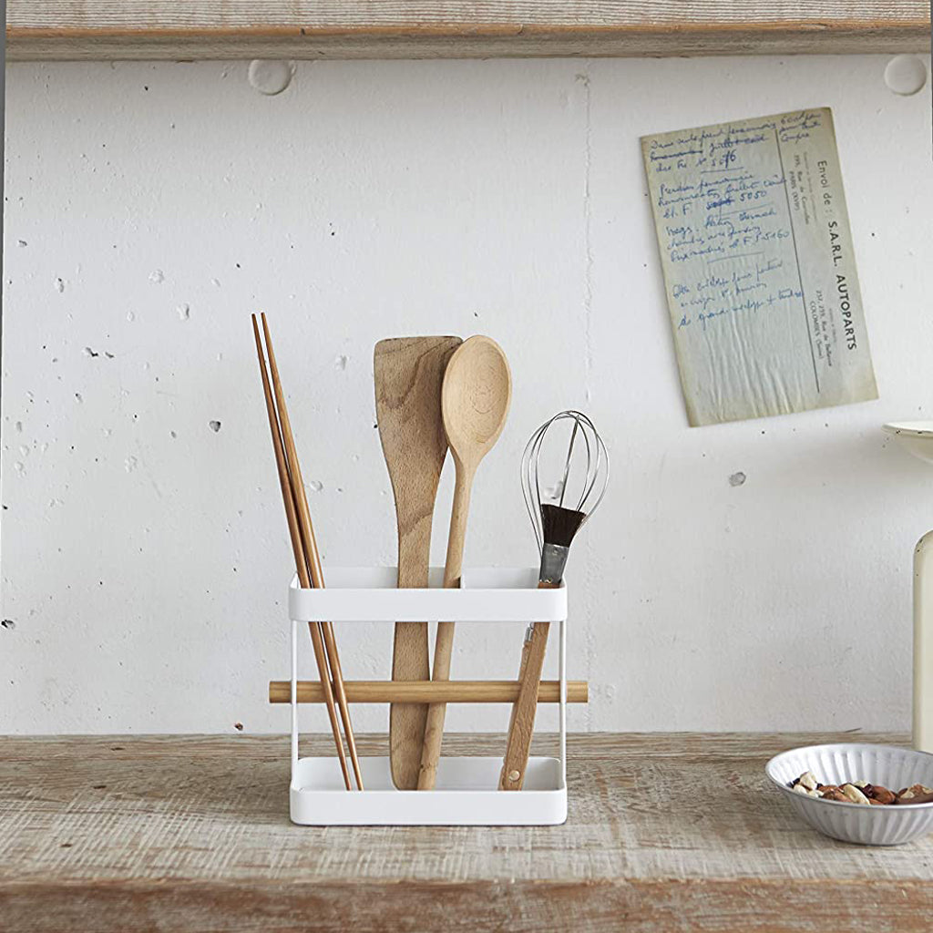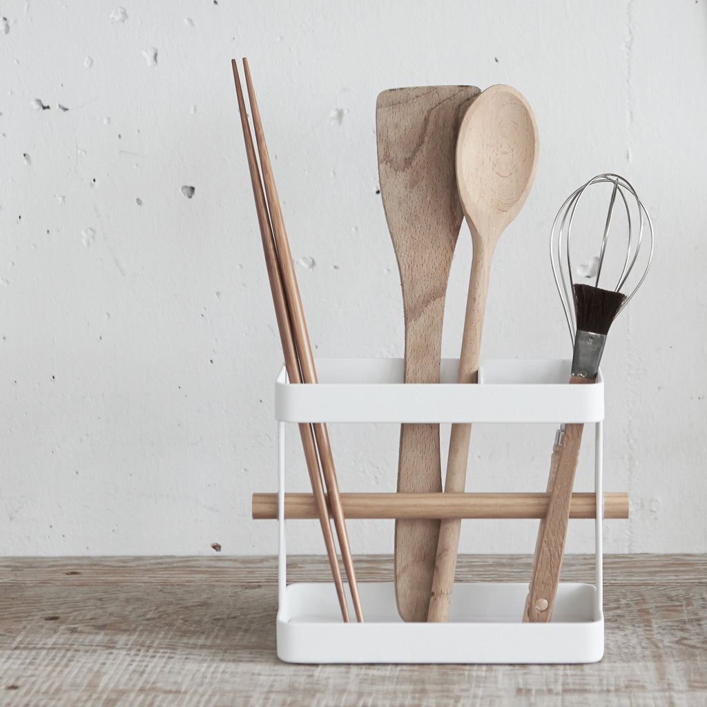 Use this tool stand to keep your kitchen utensils and household tools organized and upright. The container can hold spoons, spatulas, ladles, knives and more to open up drawer and cabinet space.