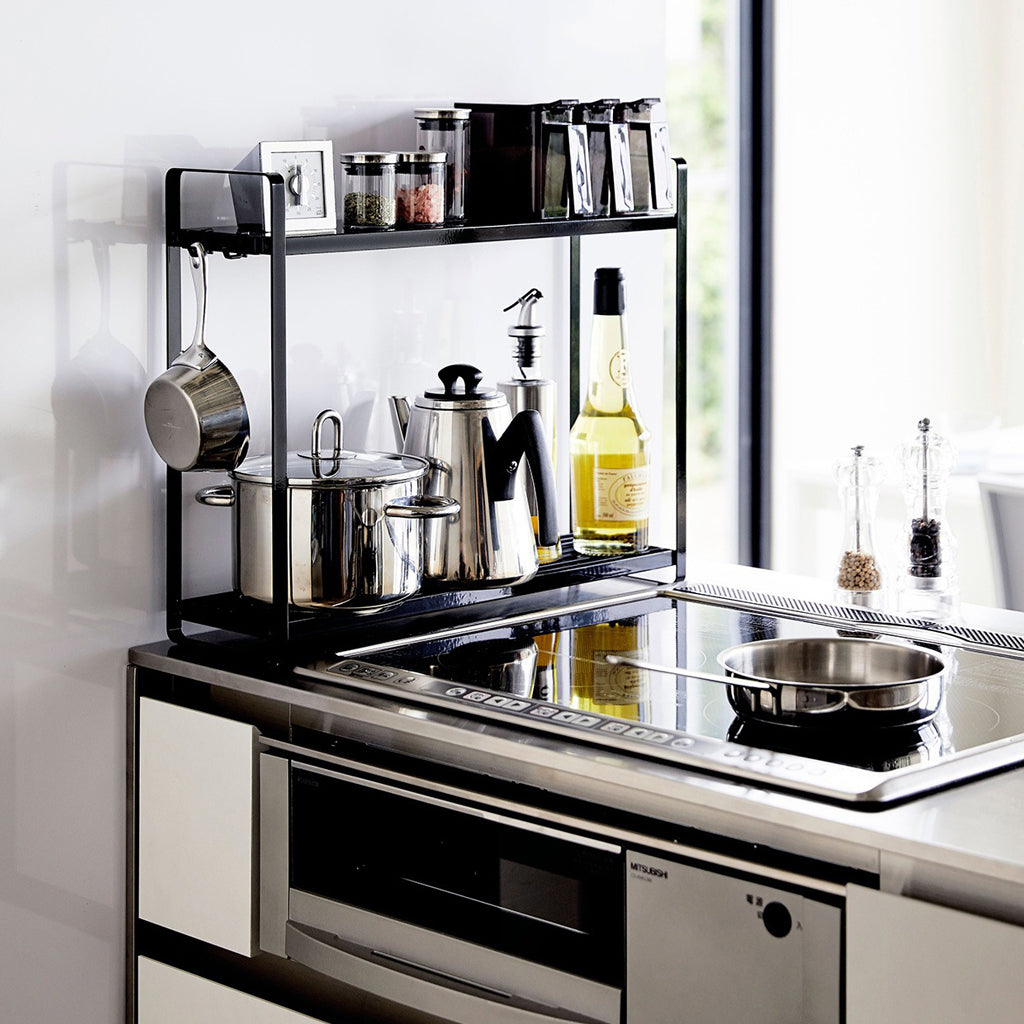 Yamazaki Tower Double Countertop Stand Black Kitchen Shelf Yamazaki - [store_name]