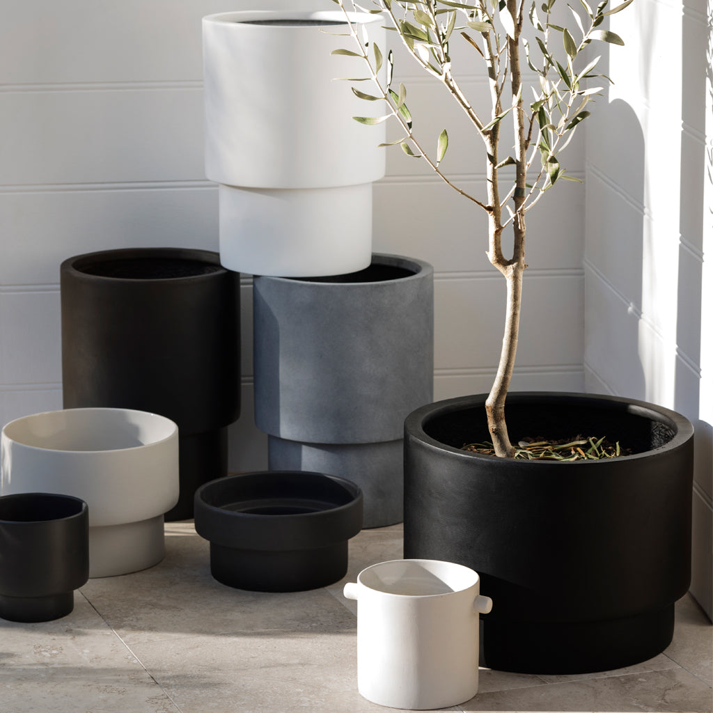 A larger pot made just for those bigger indoor plants. Its shape and form is inspired by Zakkia's Podium Pots and are not only practical but also looks great in any setting. Made from fibreglass they are lightweight so makes transporting plants around your home painless and easy. Does not have drainage holes.