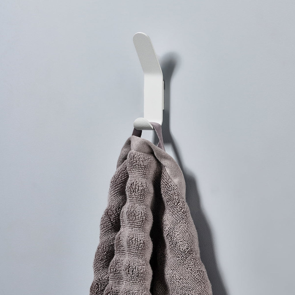 Zone Denmark's Double A Hook is the perfectly minimal hook with a classic form and small profile, taken up a notch with its additional hook ability. With its rounded J curve, you can easily throw heavy coats and towels over the hook and be assured that there is a secure hold.