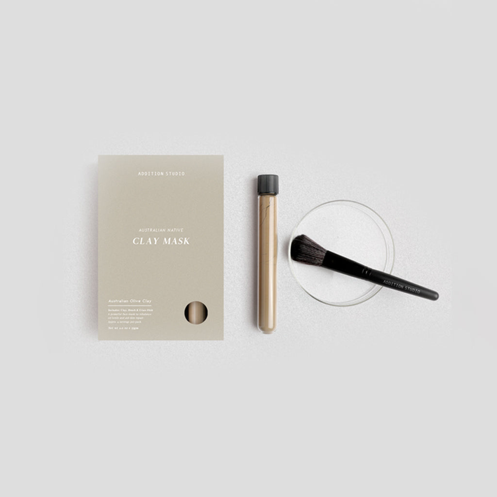 Australian Olive Clay. A detoxifying face mask to make your skin look and feel brighter, & softer. Includes : Clay, Brush & Glass Dish.