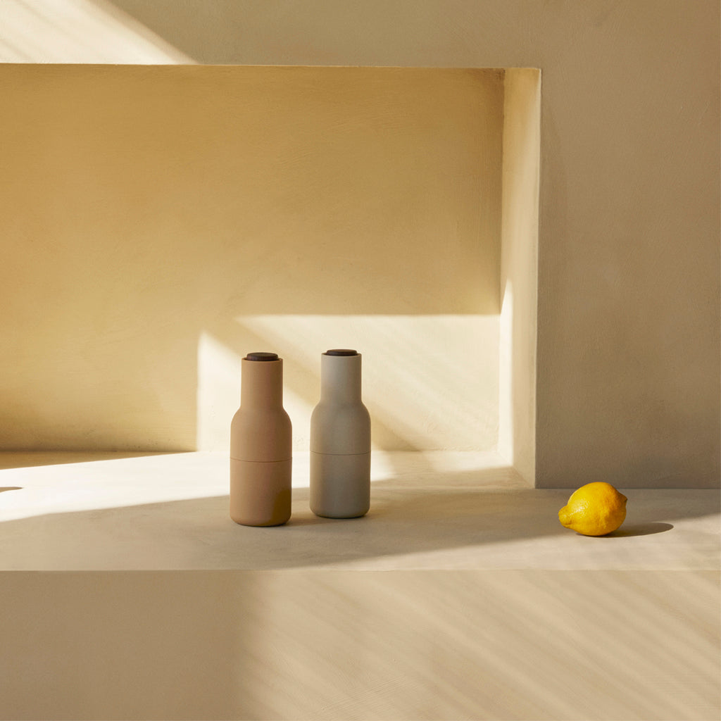Atypical for traditional salt and pepper mills, MENU’s Bottle Grinders are shaped like bottles to cleverly trick the user into engaging with the design in a playful and experimental way. Fitted with a powerful ceramic mill that makes light work of grinding a wide range of spices, Bottle Grinders are easy to operate, fill and clean, and the upright design ensures surfaces remain free from unwanted residue.