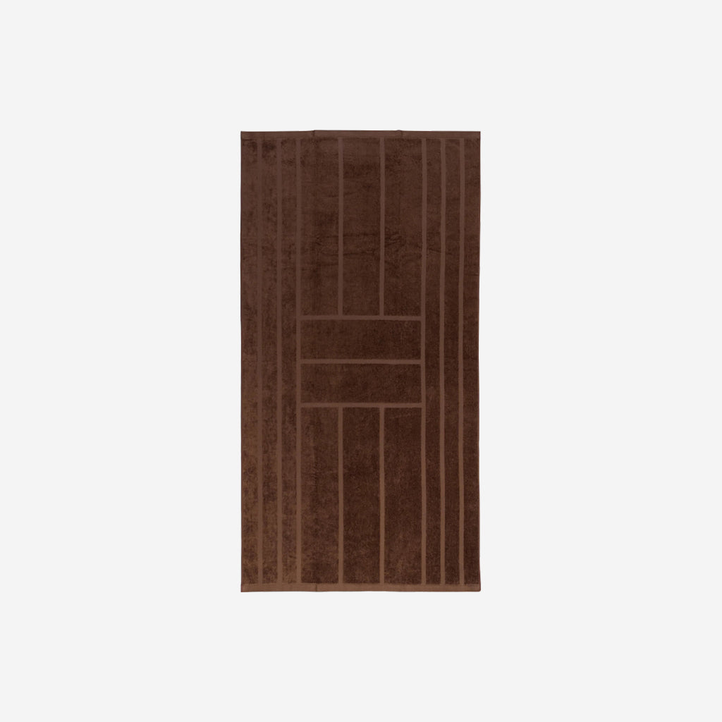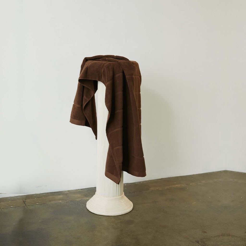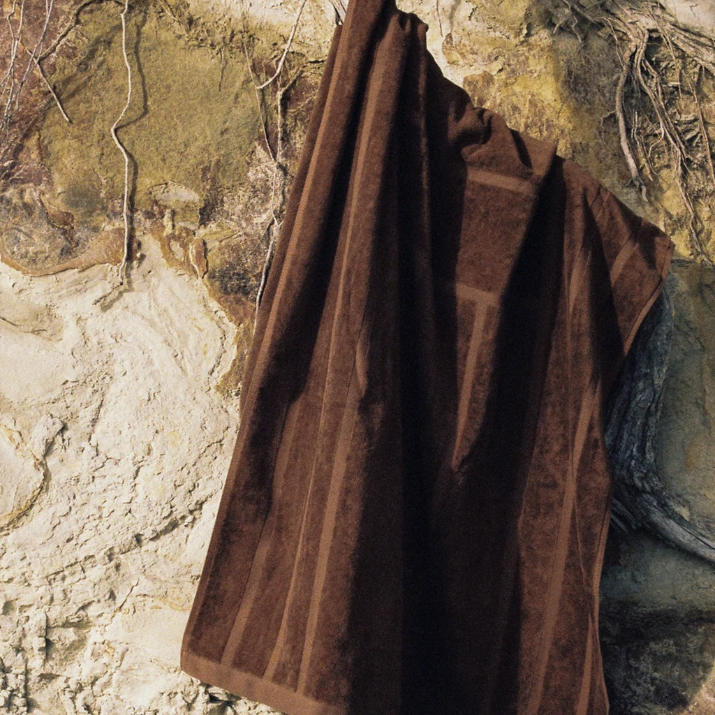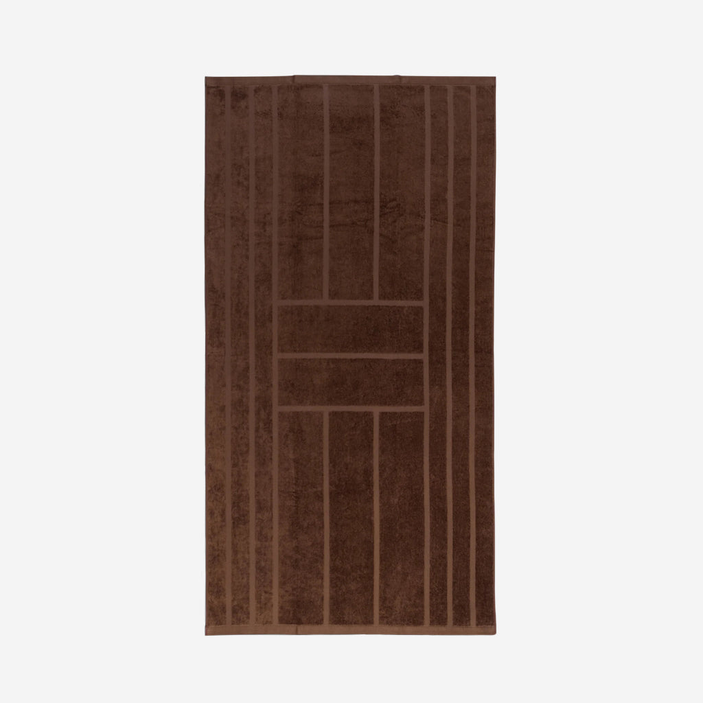 100% Organic Cotton pool towel or bath sheet. This playful towel in checkerboard print, synonymous with the Baina brand features a reversible colourway. The soft tabac brown checkerboard contrasting against the Noir (black) makes a subtle statement in any bathroom.