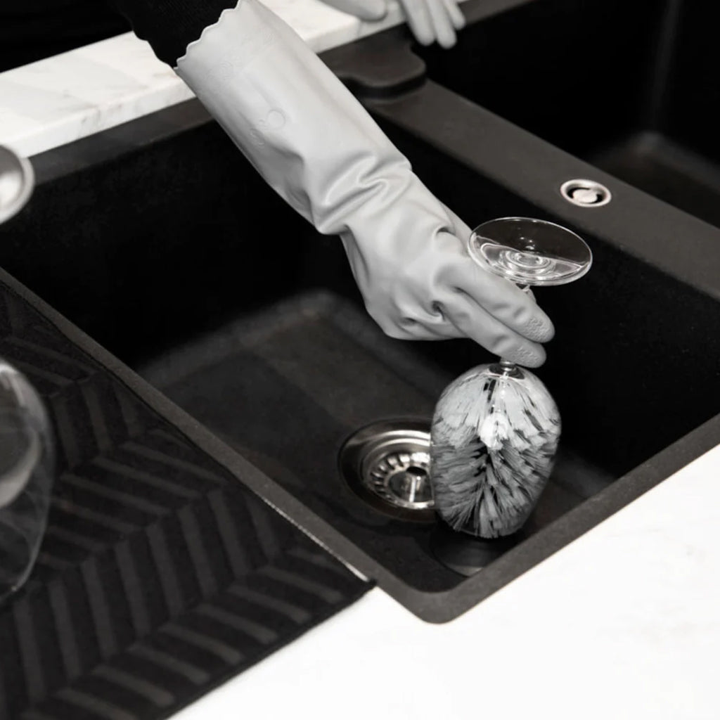 Can’t clean the bottom of the wine glass or baby bottle? No worries! Barkly Basics' glass and bottle brush scrubber can easily clean the bottom of your wine glasses, baby bottles, cups & mugs, water bottles and Nespresso milk frother. Simply attach the suction cup onto the sink to create suction and place your bottle or glass onto brush and scrub away. Brush bristles are heavy duty.