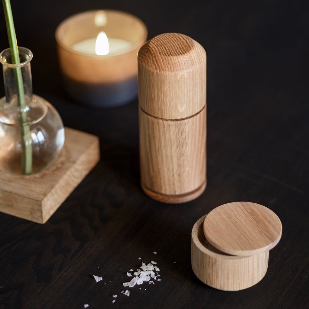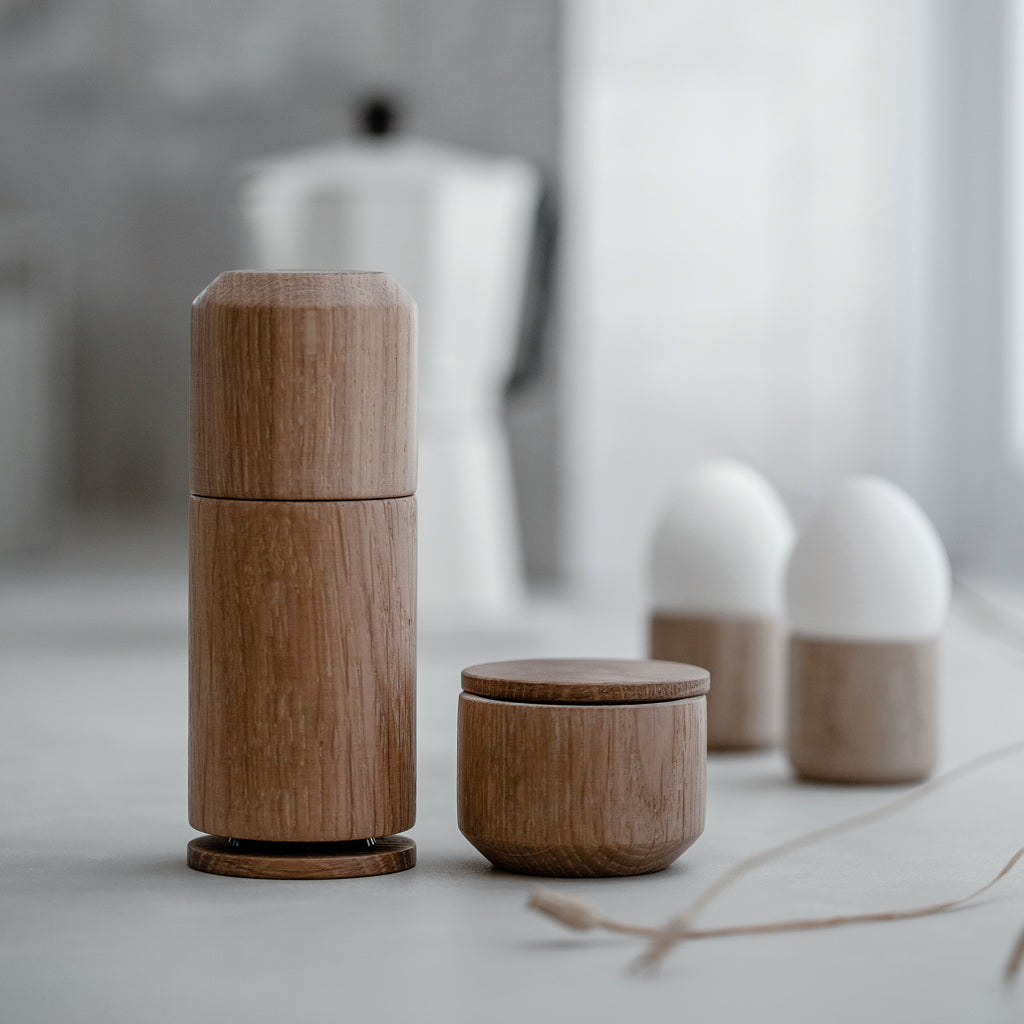 Crush Me are grinders for salt or pepper in sustainable oak with a high-end ceramic grinder mechanism. The design is simple and timeless and yet very effective and functional.