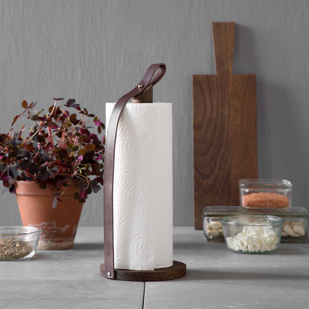Ekta's Hands On is a stylish and practical kitchen paper-towel holder in sustainable oak and leather. It fits kitchen paper rolls up to approximately 23 cm.