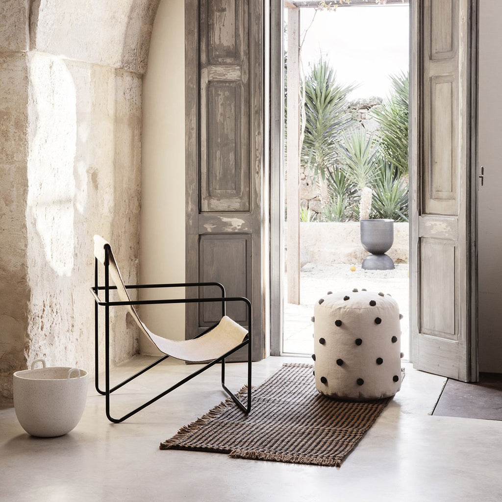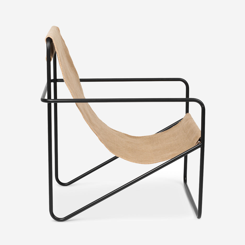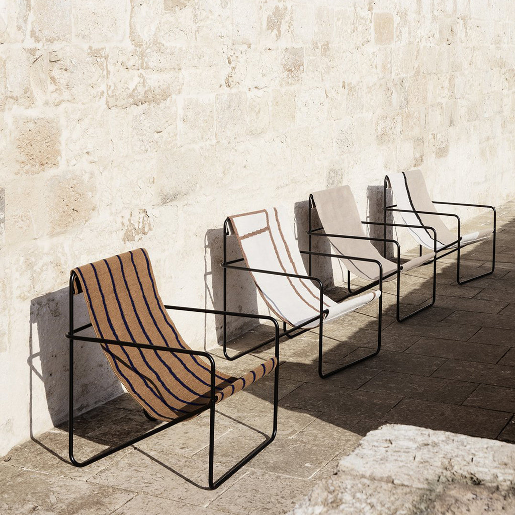 A modernist chair with a graceful profile, the Desert Lounge Chair is crafted from a tubular powder coated steel frame, holding an interchangeable woven textile seat made entirely from recycled post-consumer plastic that has been spun into PET yarn. Suitable for use both indoors and out, the lounge design invites relaxation.