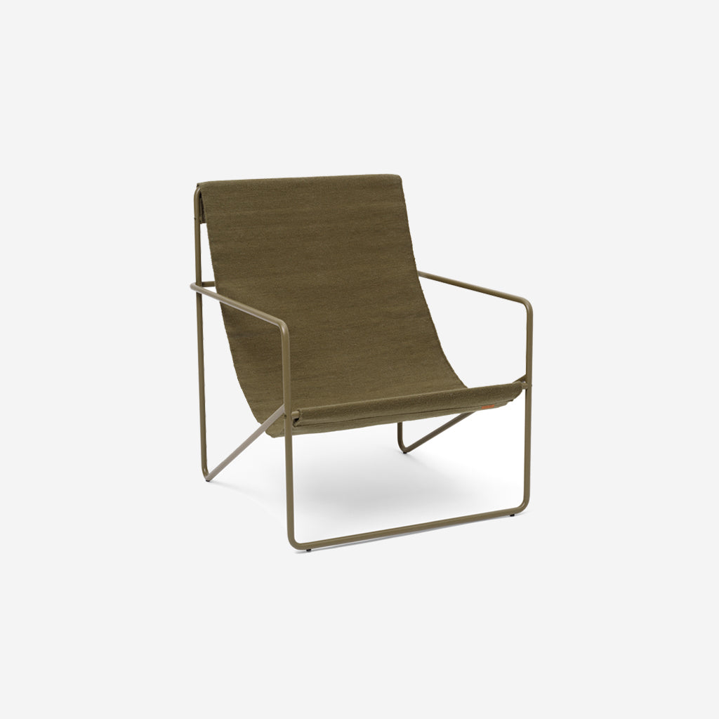 A modernist chair with a graceful profile, the Desert Lounge Chair is crafted from a tubular powder coated steel frame, holding an interchangeable woven textile seat made entirely from recycled post-consumer plastic that has been spun into PET yarn. Suitable for use both indoors and out, the lounge design invites relaxation.