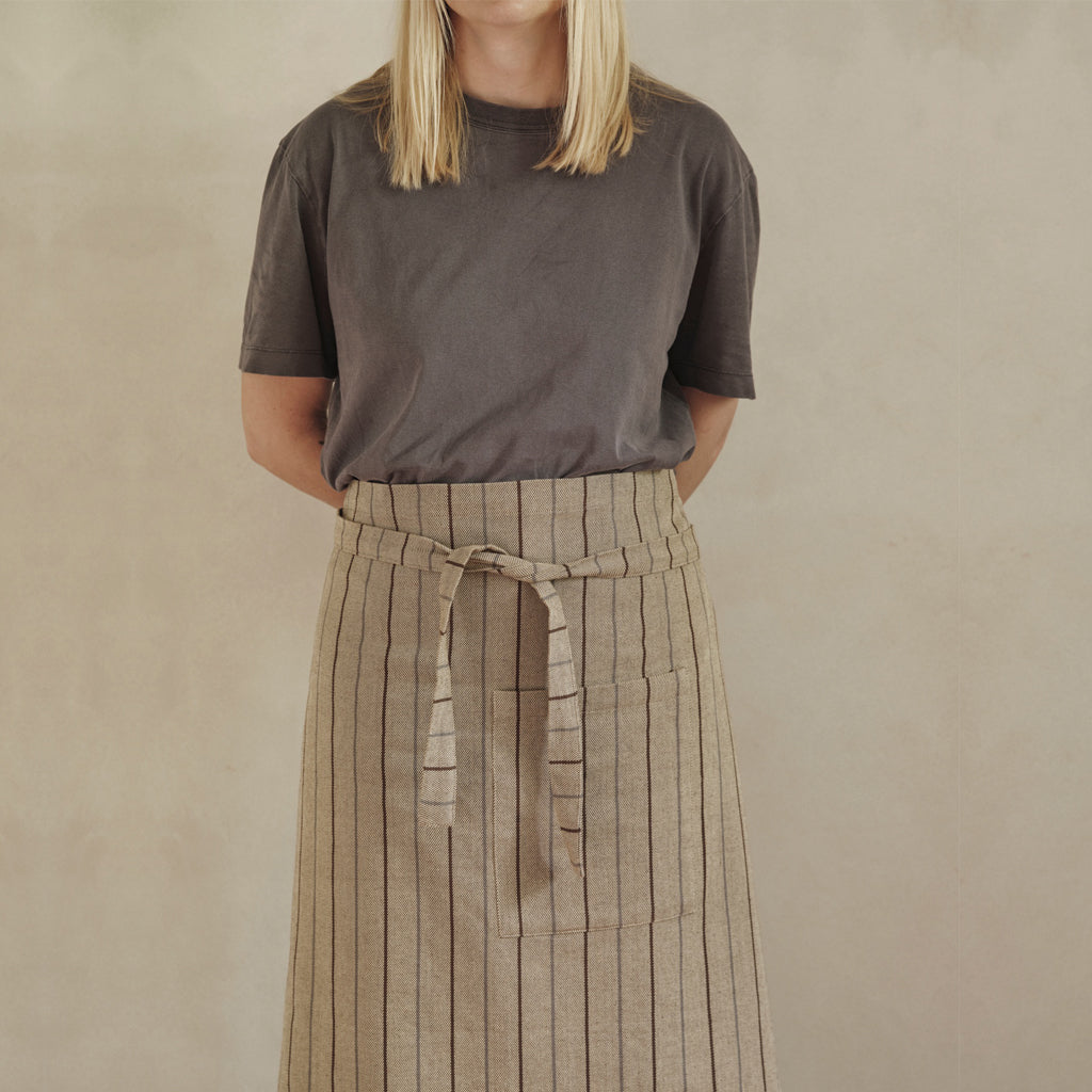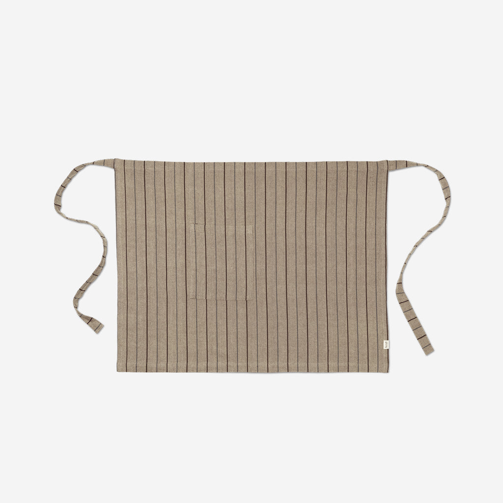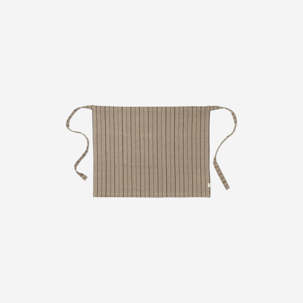 The Ito Family presents a contemporary interpretation of traditional kitchen textiles. Inspired by classic bistro aprons, the Ito Apron is designed to hang around your waist. Developed for durable kitchen use, it features the strength and texture of a twill weave. The apron is made from 100% GOTS-certified organic cotton and showcases a delicate stripe design intersecting a two-tone twill weave. The subtle colour tones add a timeless elegance, making it a perfect fit for any kitchen. Additionally, the apron includes a practical large pocket, ideal for keeping essential tools and utensils close at hand.