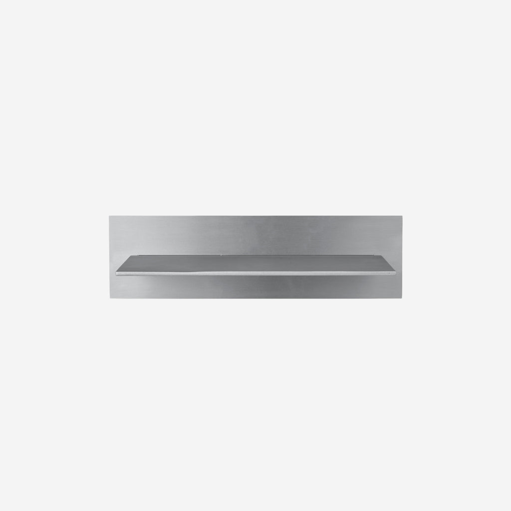 The Lager Wall Shelf in its single horizontal format offers a clean and considered approach to wall-mounted storage. Crafted from brushed aluminium with subtle industrial cues, it serves as a minimal solution for displaying glassware, objects or everyday items.