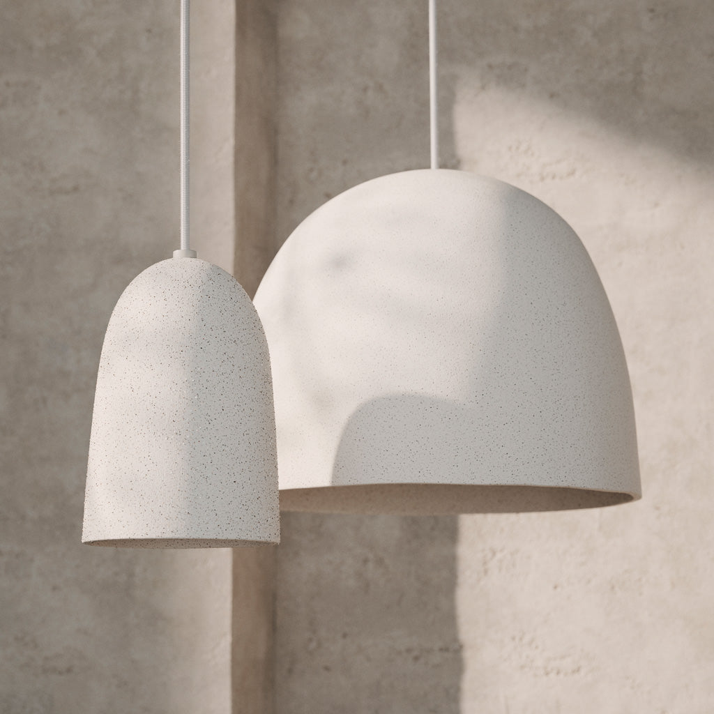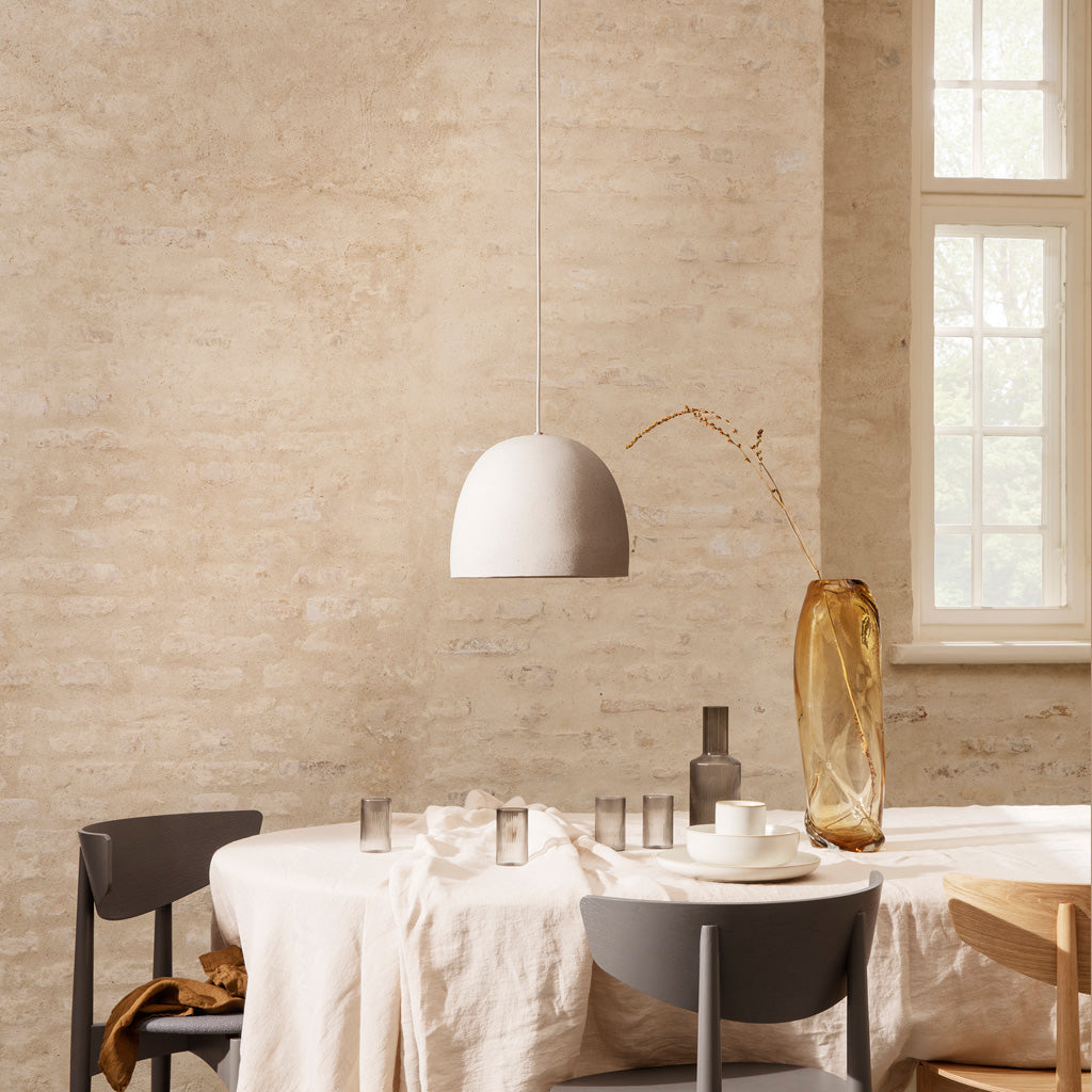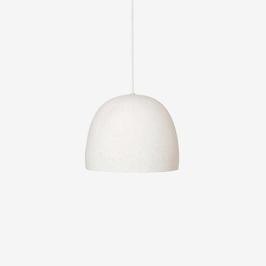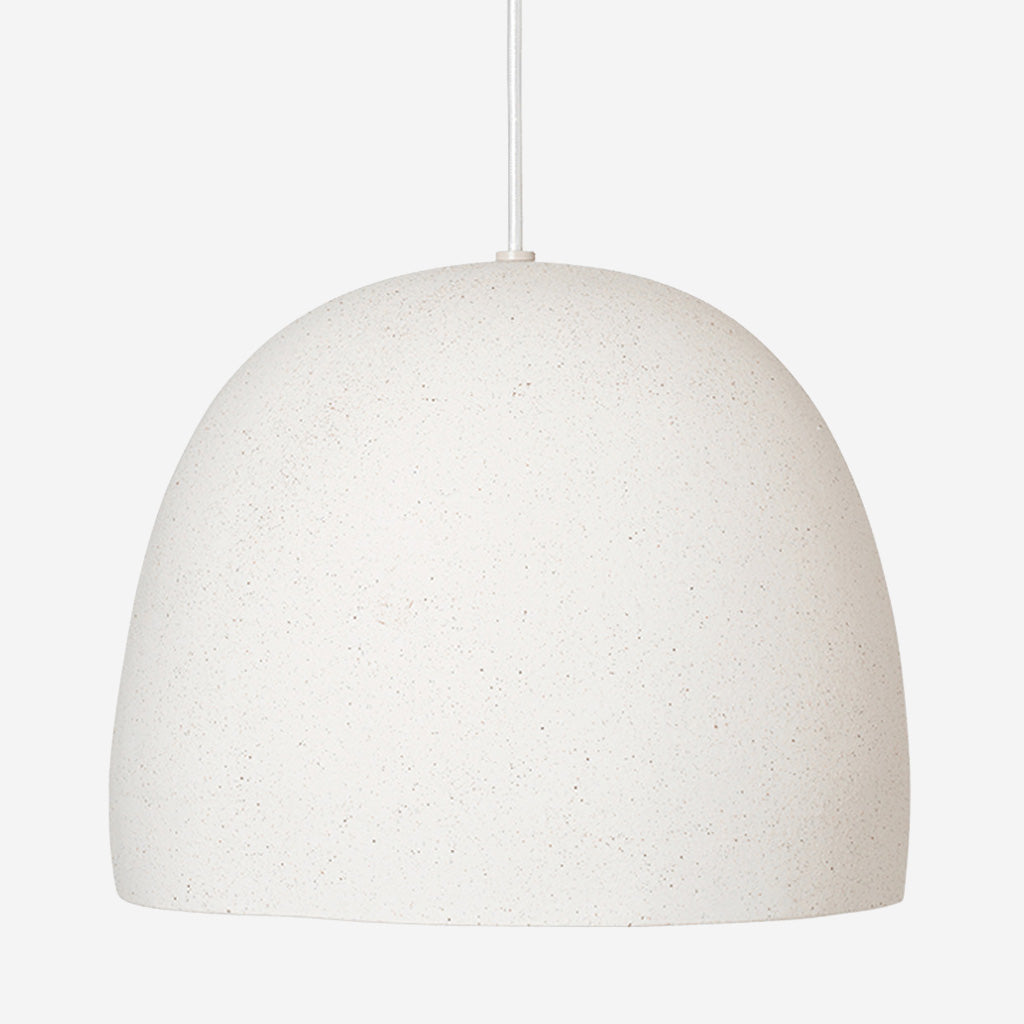 Made with a distinct stoneware that features a grainy, raw texture, the Speckle Pendant is a ceramic ceiling lamp with a natural look and feel. Crafted by hand, the lamp has a fluid, organic silhouette. The matching ceramic canopy unites the lamp’s unique expression.