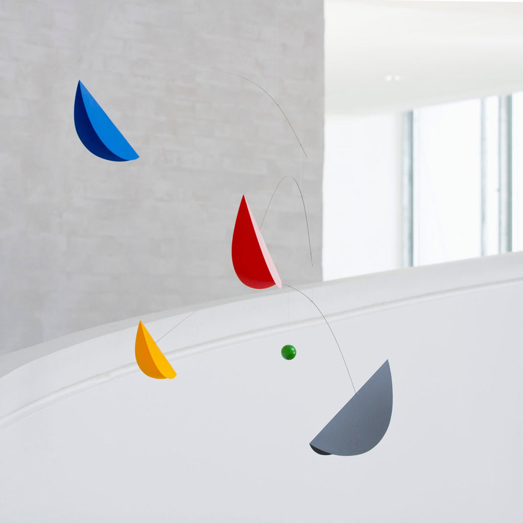 Flensted's mobiles are mesmerising works of art designed to embody the interplay between air currents, materials, colours and shapes in a calm, constant and harmonic manner.