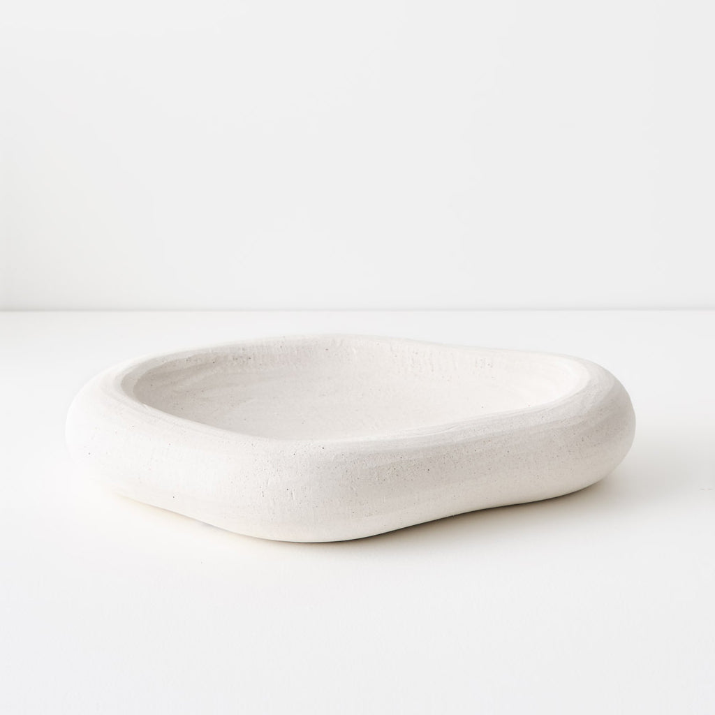 This Fedila tray, has a white chalk finish, offers versatile functionality. Perfect for displaying fruit in the kitchen, organising jewellery, holding candles, or serving as a standalone decorative piece, it adds a touch of rustic elegance to any space.