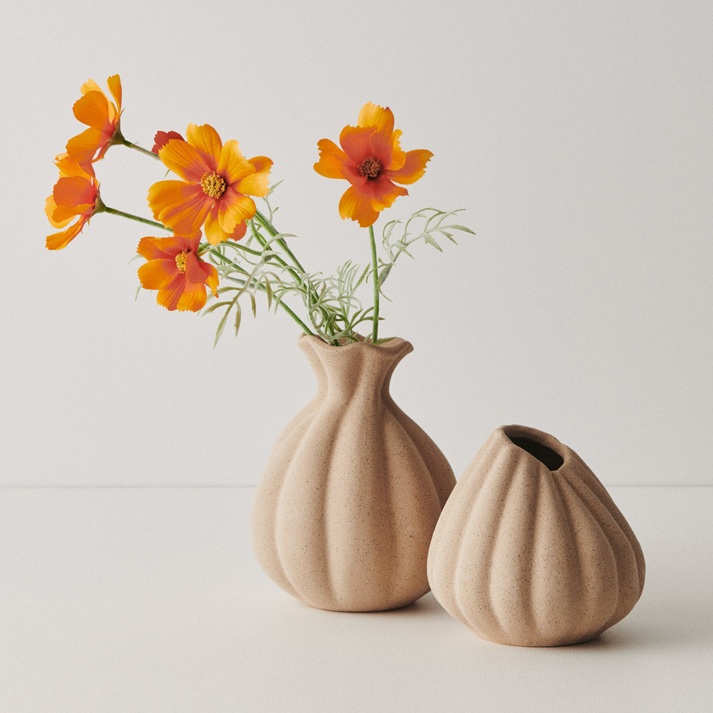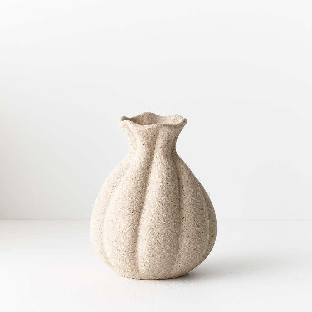 The Hana Vase in sand showcases a captivating, twisted finish complemented by a charming, speckled look. Its unique design adds an intriguing dimension to any space, making it a standout centrepiece or decorative accent. With its distinctive aesthetic, it infuses interiors with a touch of contemporary elegance and artistic flair.