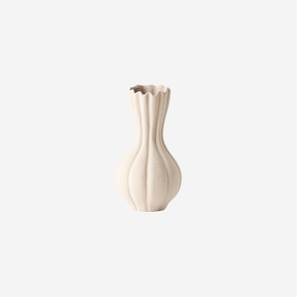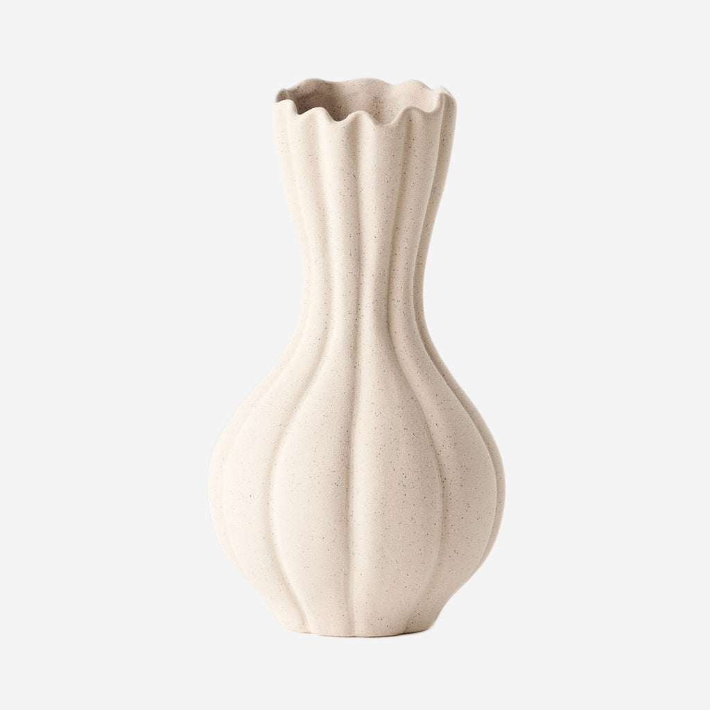 The Hana Vase in sand showcases a captivating, twisted finish complemented by a charming, speckled look. Its unique design adds an intriguing dimension to any space, making it a standout centrepiece or decorative accent. With its distinctive aesthetic, it infuses interiors with a touch of contemporary elegance and artistic flair.
