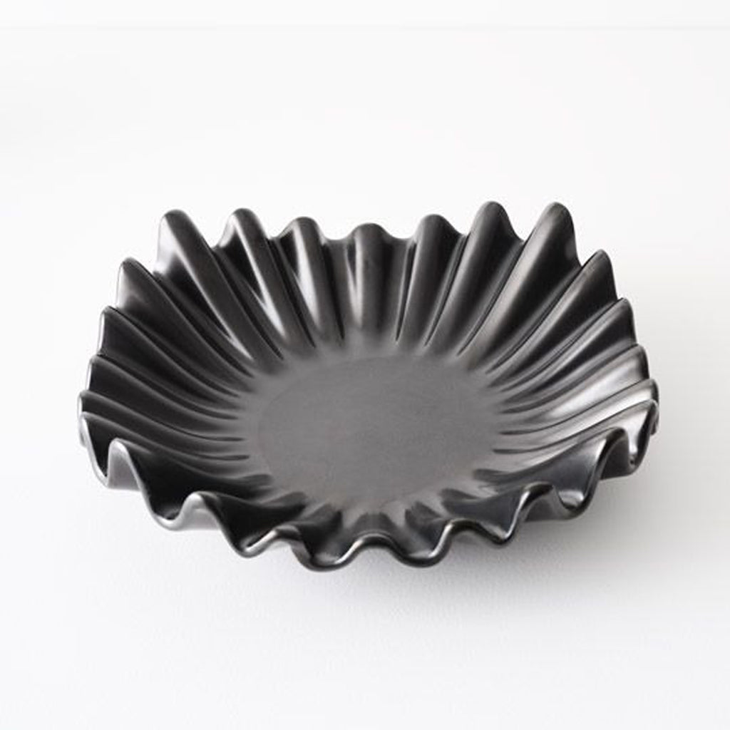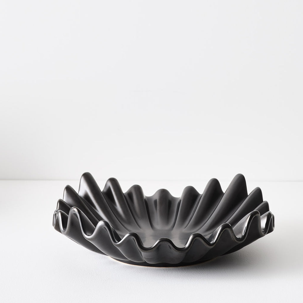 The Kaia bowl is a flatter bowl / platter that has a squarer shape with scallop edging. Its ceramic glaze and intricate detailing make it both a stylish decorative piece and a functional addition to any setting.