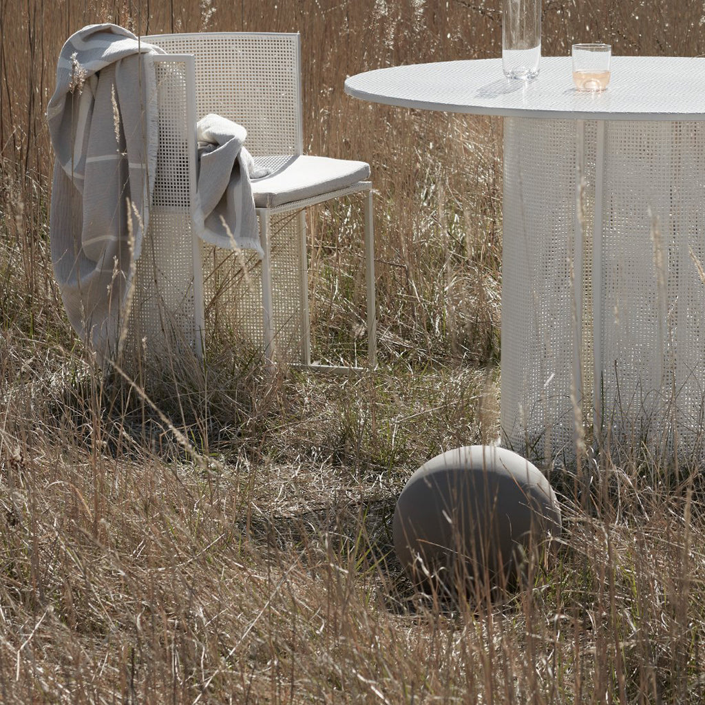 This large Globe Sculpture is a highly decorative terracotta sphere glazed with beige engobe. A large sculptural design object for you to use when styling your home.