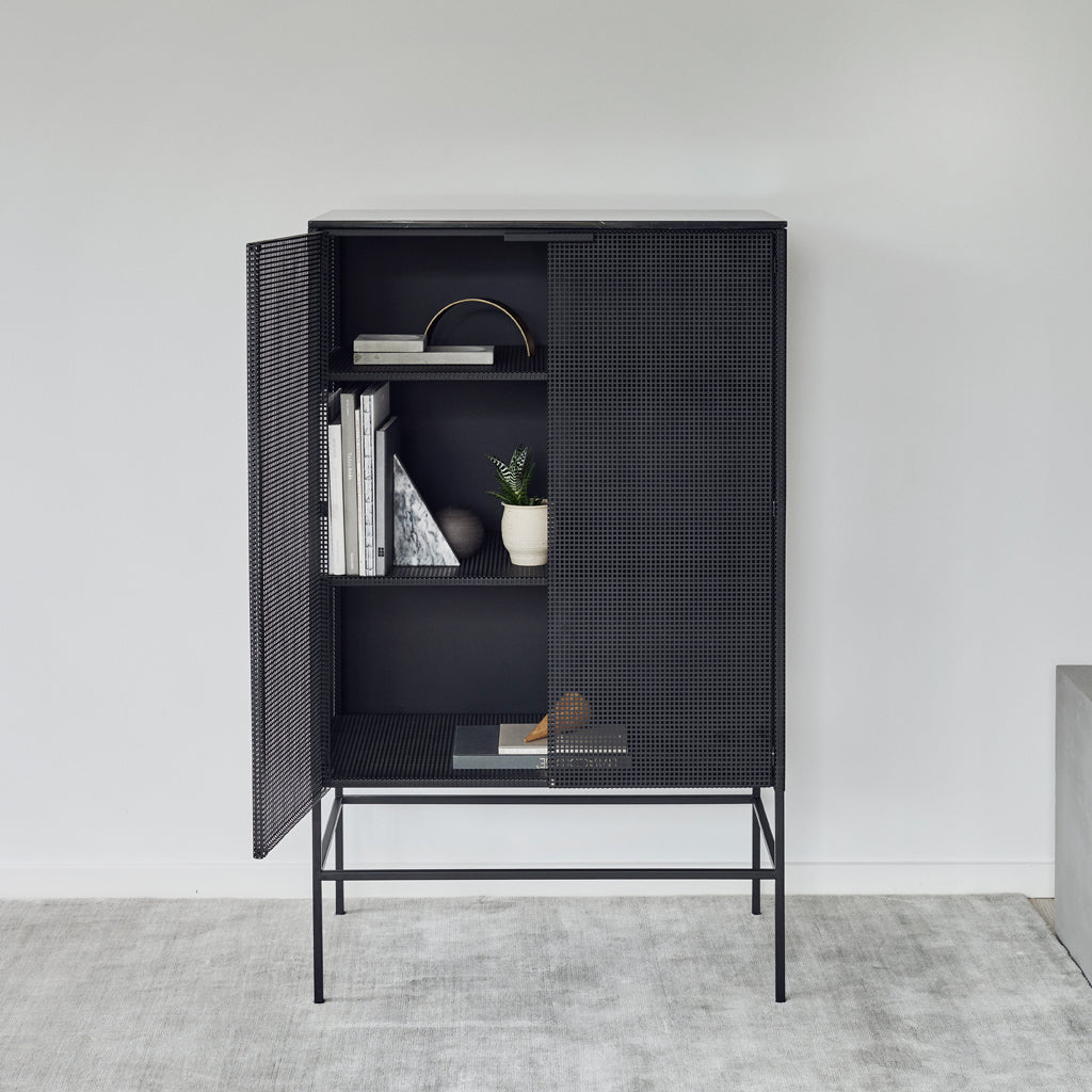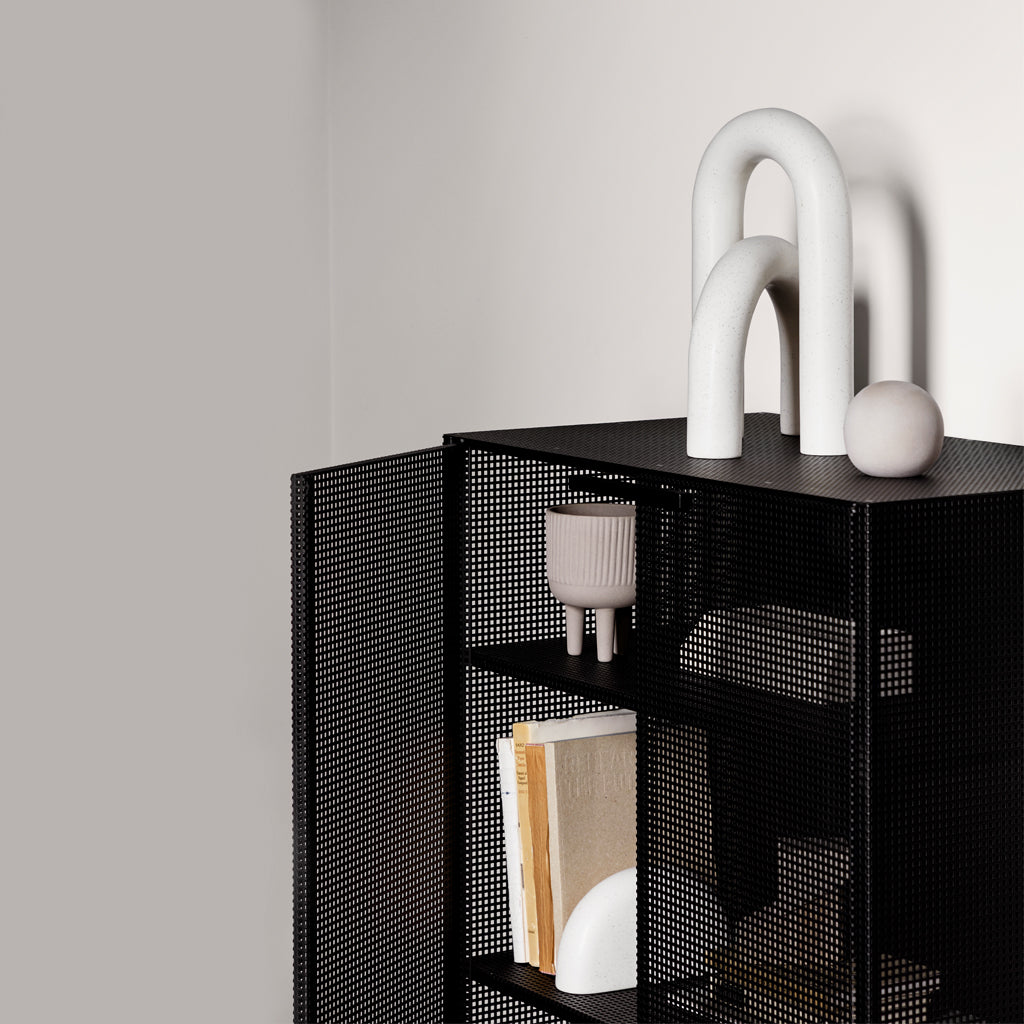 Despite its large size the Grid Cabinet appears light and agile. The allure of the perforated steel surfaces lets you see the silhouettes of the items stored inside. A perfect opportunity to curate a lovely vignette of your dearest belongings. The Grid Cabinet is the ideal storage solution for the contemporary home.