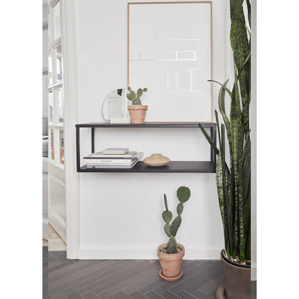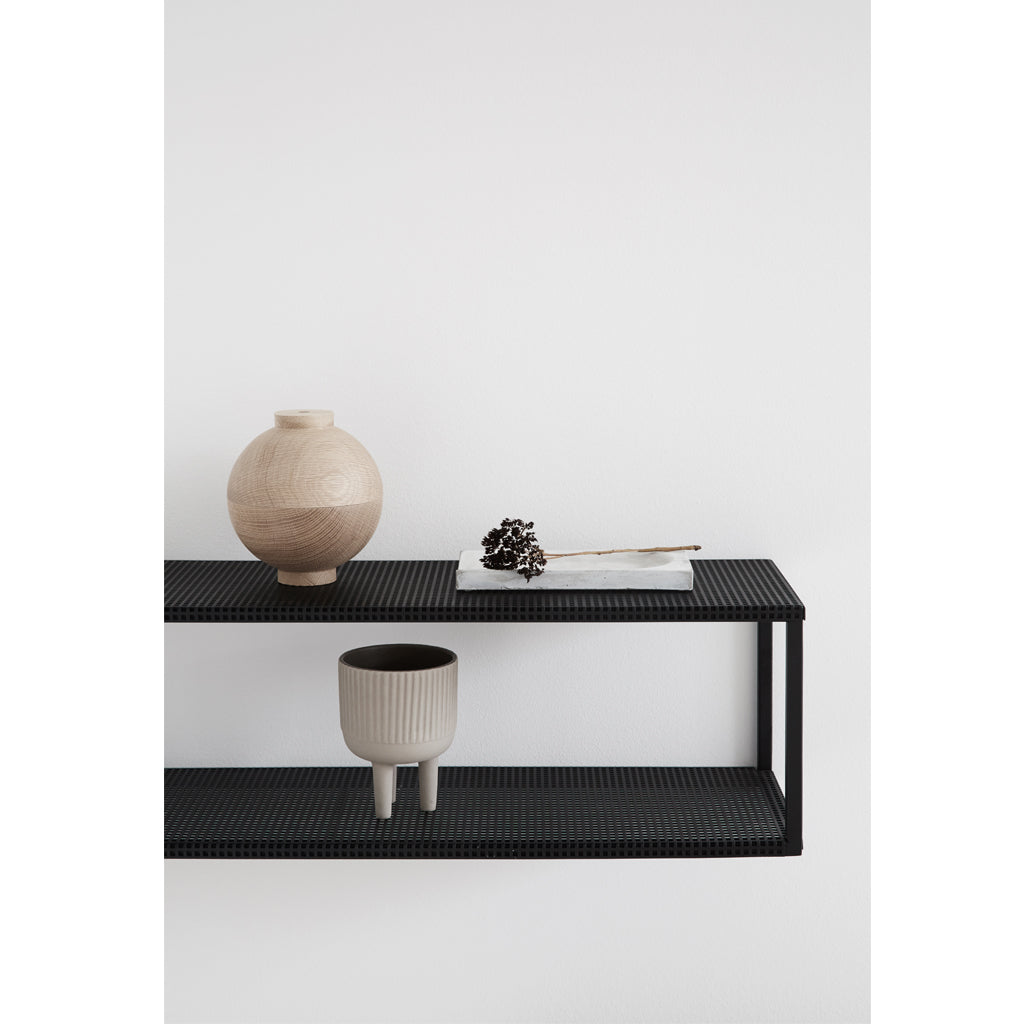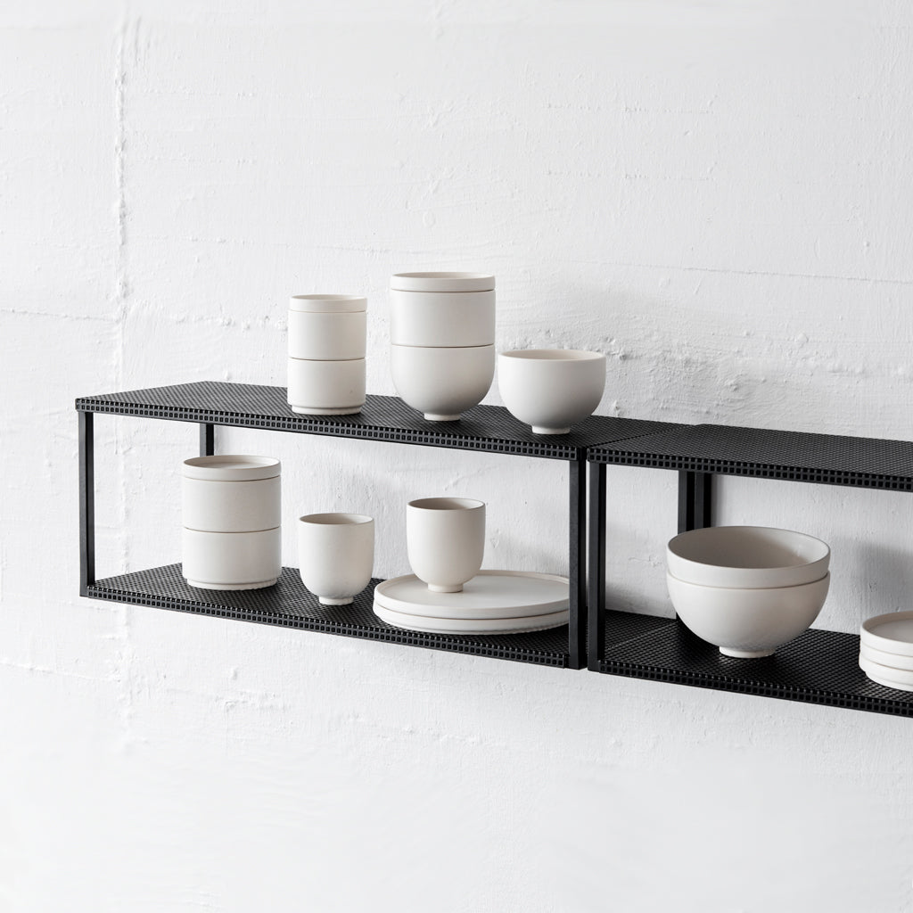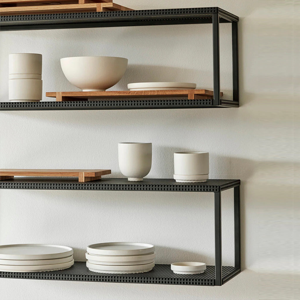 Grid Wall Shelf is simple and classic. Elegantly displaying anything from shoes, books to kitchenware. Available in black and white powder coated steel.