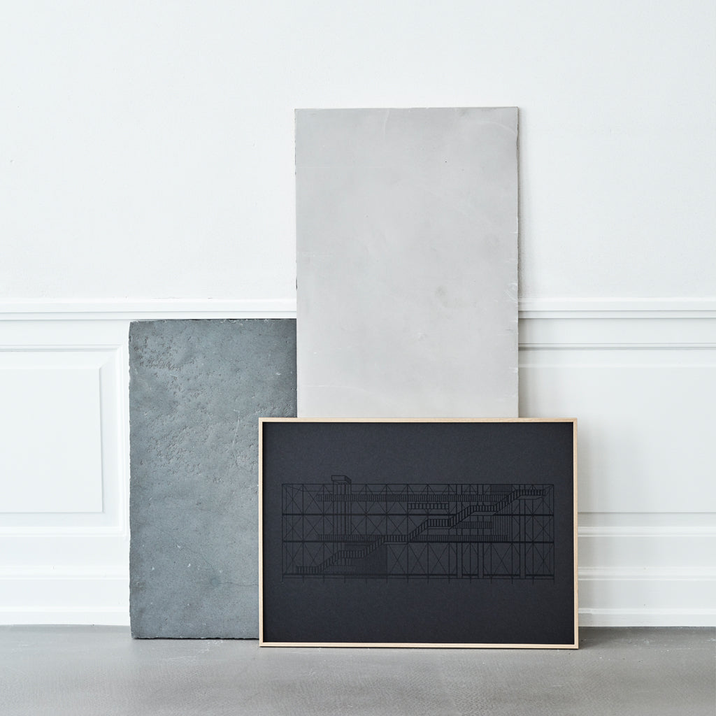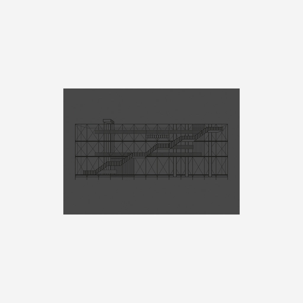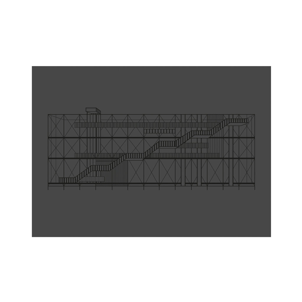 Inspired by the famous Centre Georges Pompidou in Paris, the Pompidou illustration is made on grey paper with white glossy vanish. A beautiful poster of a true architectural design classic.