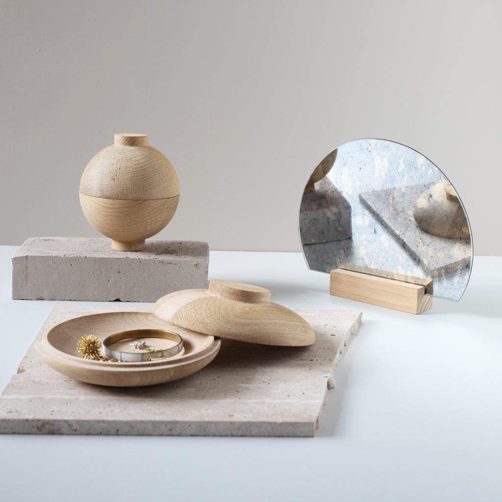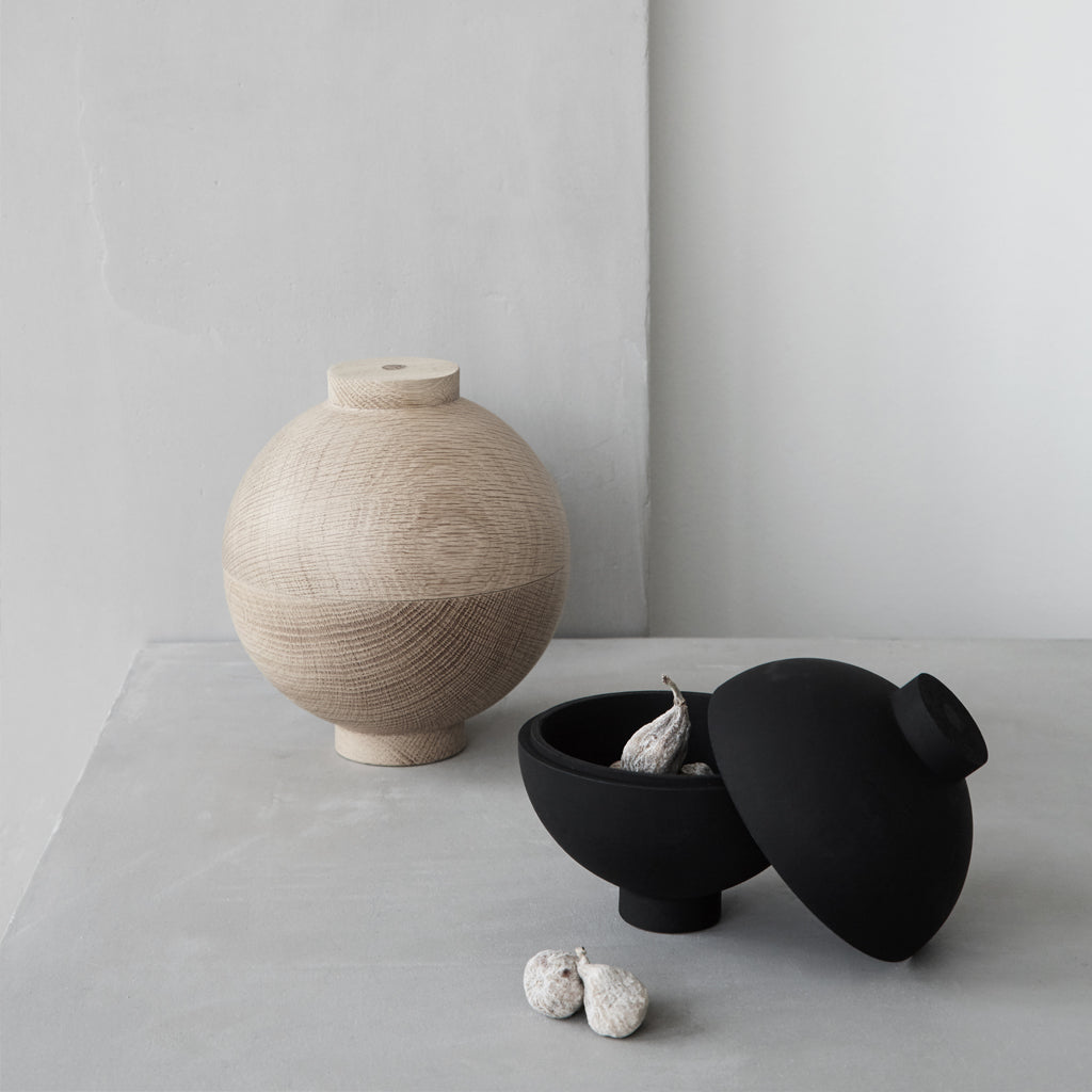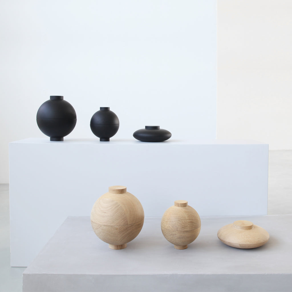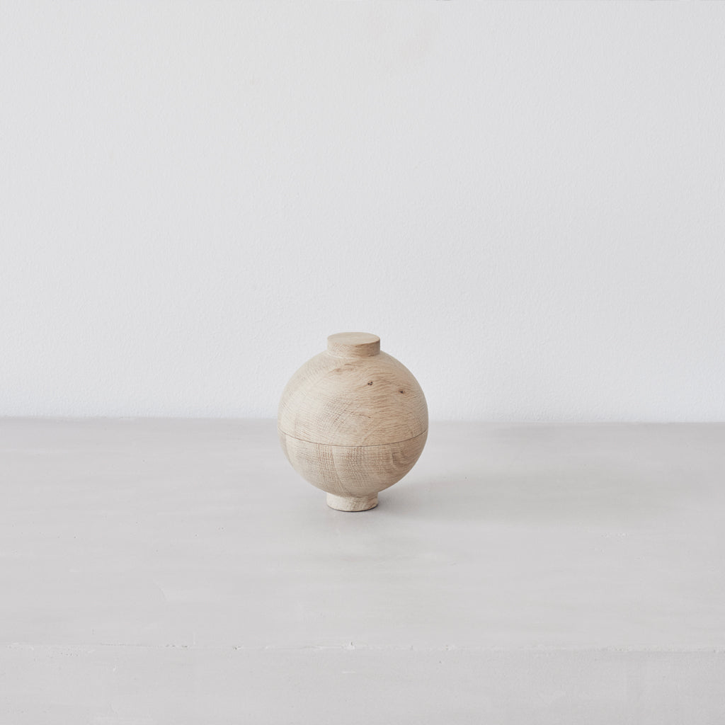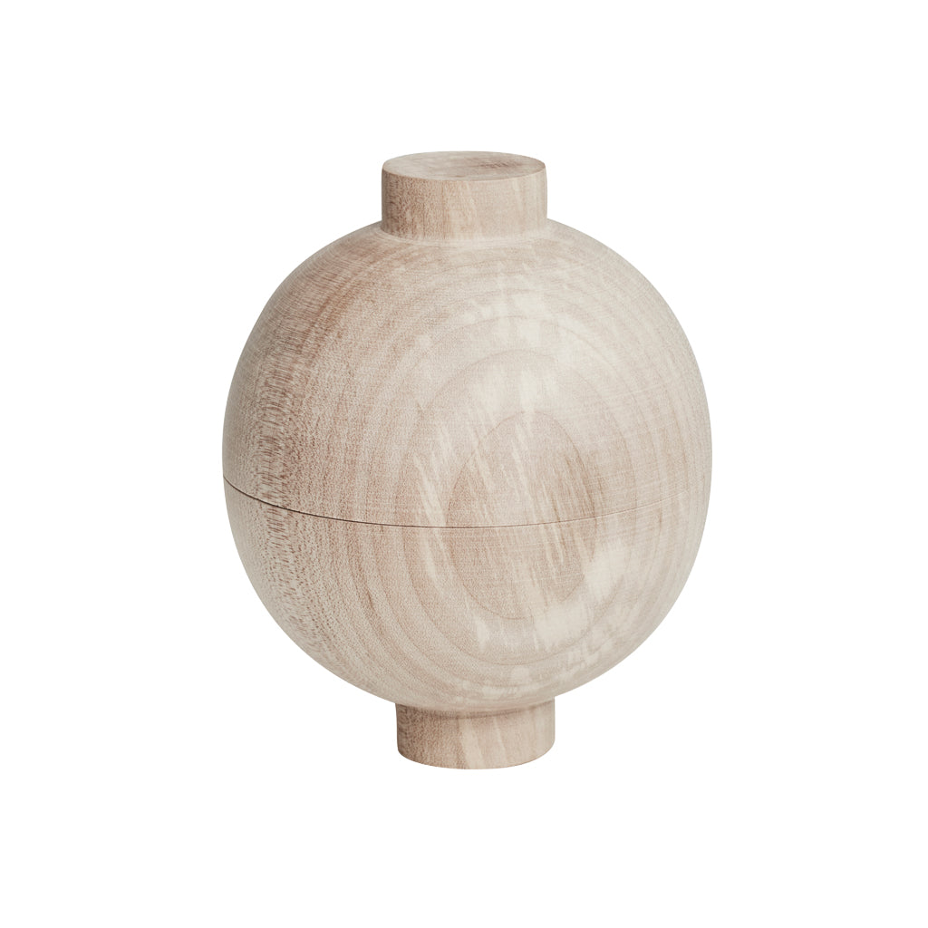 Wooden Sphere is two turned wooden bowls that makes a perfect circle when united. Use the sphere for storage or separate the two bowl and use them as trays.