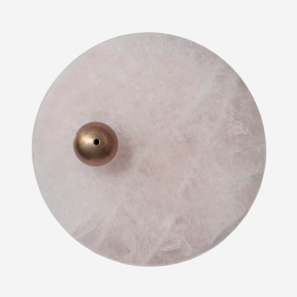 A hand crafted brass dish paired with exquisitely selected semi-precious stones combines to create the signature Hoseki mari by Maho for an ethereal burning experience. Minimalist in its design and elegant combination, the brass and crystal materials direct smoke energy into the conduit for a healing, ceremonial cleanse.