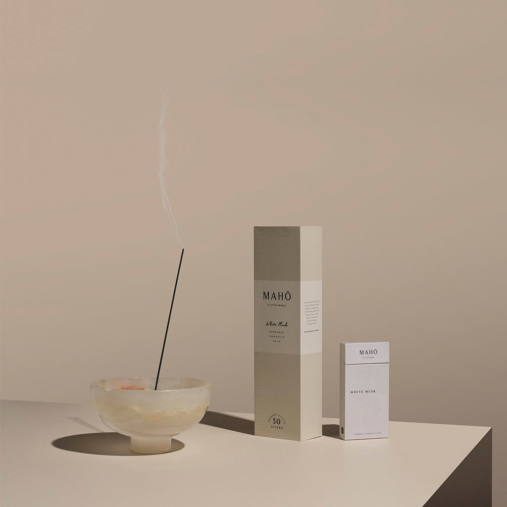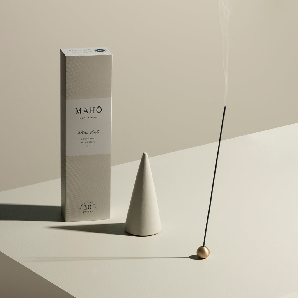 Includes : 30 Incense Sticks encased in a glass tube + Maho button burner holder