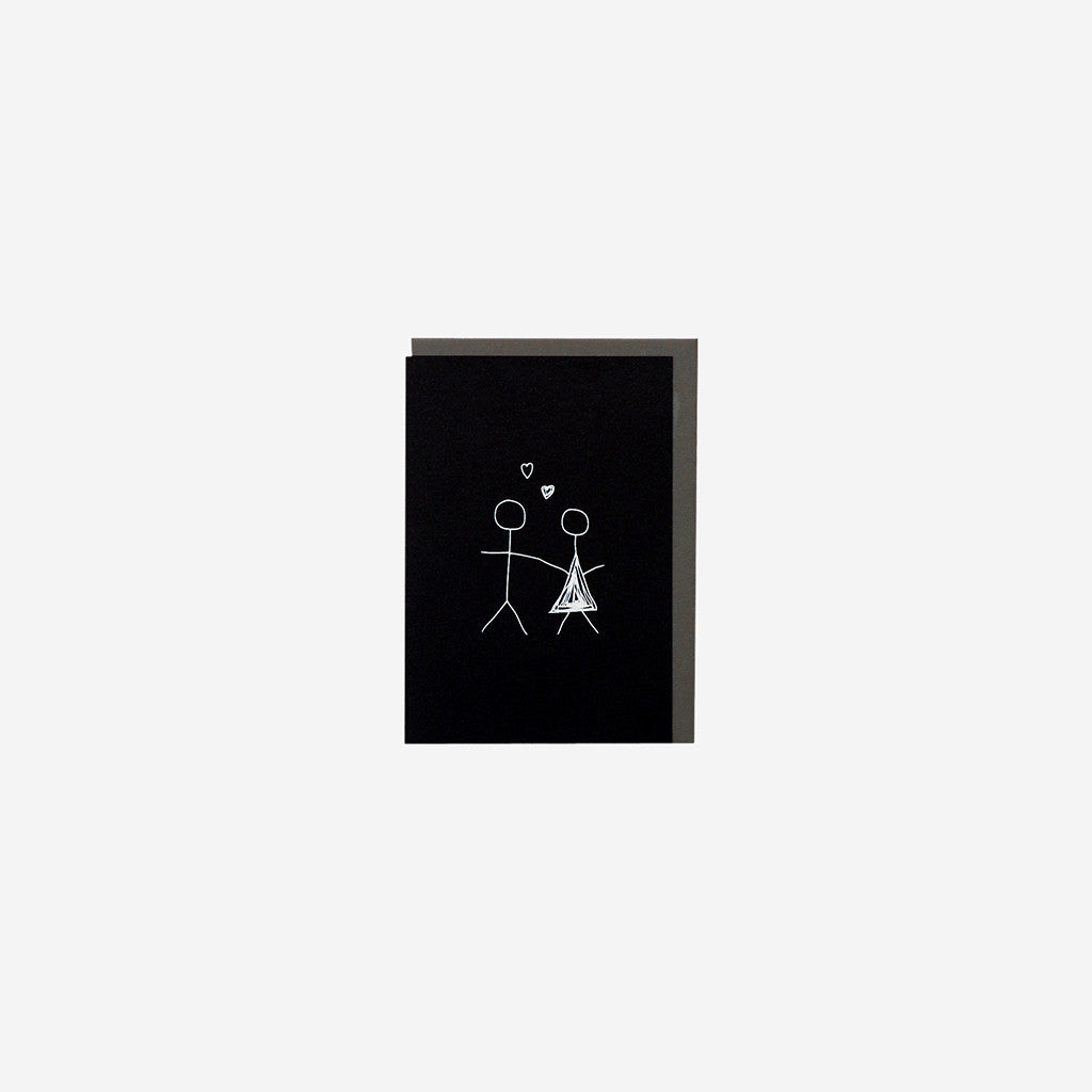 Colour : Black card, hand screen printed in white. Blank inside, with a grey paper insert for easy message writing! Comes with a beautiful grey envelope.