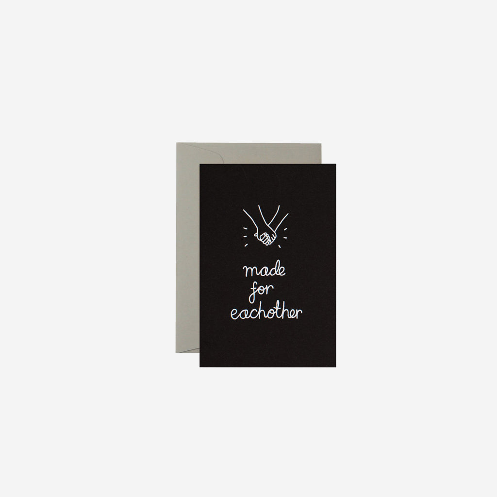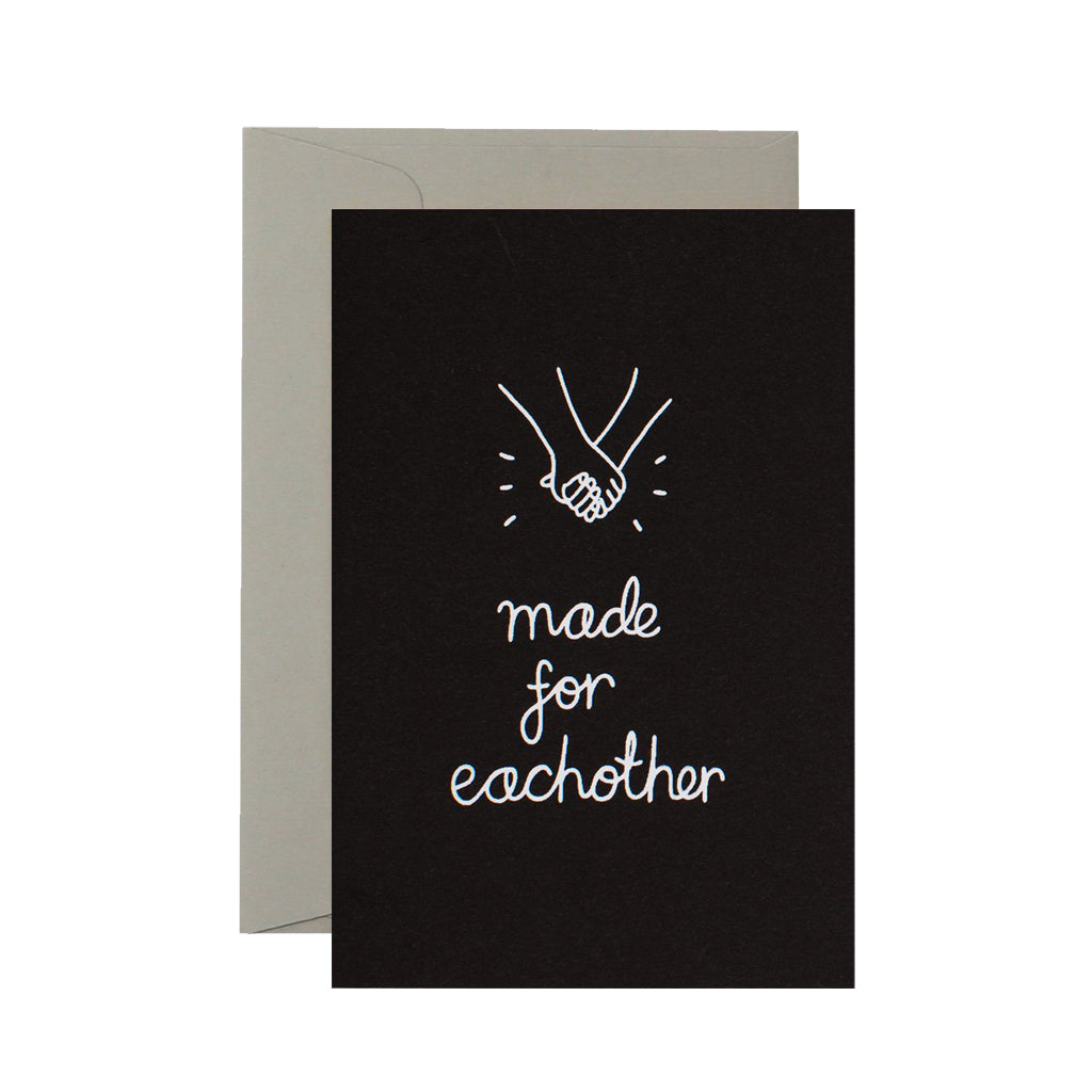 Colour : Black card, hand screen printed in white. Blank inside, with a grey paper insert for easy message writing! Comes with a beautiful grey envelope.