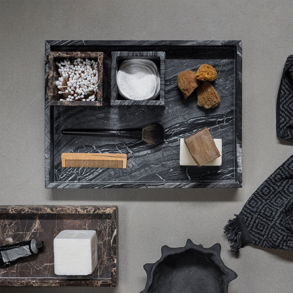 Indulge in a luxurious feeling with the elegant MARBLE tray in sleek black and grey marble from Mette Ditmer.