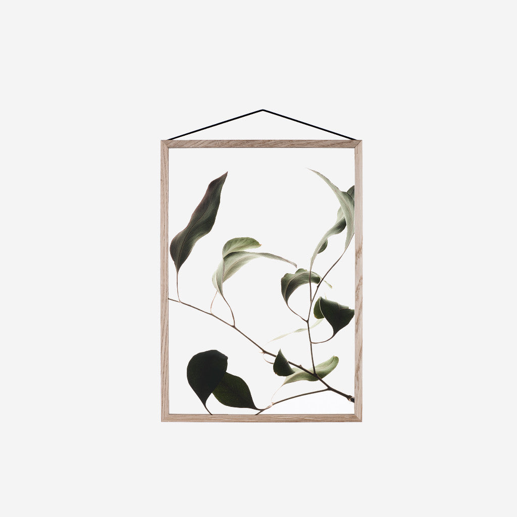 This new collection, called Floating Leaves by Norm Architects, are images of botanical leaves at various stages of fresh green beauty and decay printed directly onto transparent foil which then sits between the perspex glass of the Moebe Frame. The end result is a unique & innovative transparent print that gives the illusion of a real life leaf floating within the frames.