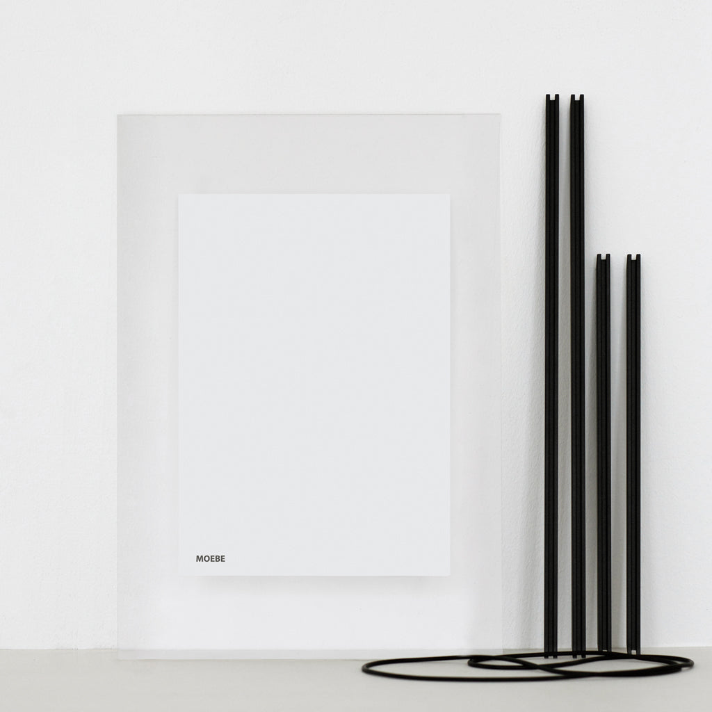 Let your art collection or photos speak for themselves by framing them in Denmark's Moebe's beautiful and minimalist Art frames. Frame is at its most simple, designed so that it in effect as been reduced right back to its core form and given a layer of transparency. It consists of two pieces of acrylic glass, four lists made of aluminium and a specially made rubber band. The dual function of this rubber band is what holds the frame together and serves as the hanging point for the frame on your wall.