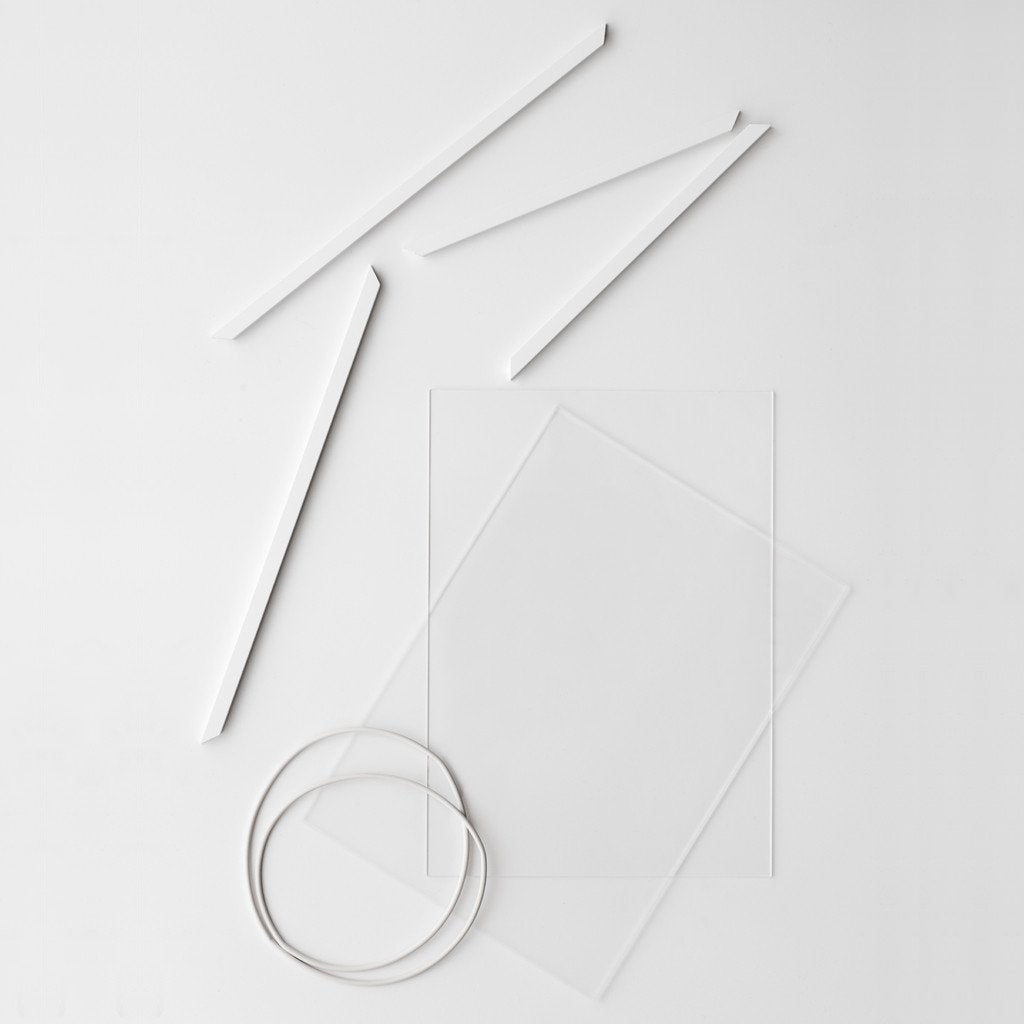 Let your art collection or photos speak for themselves by framing them in Denmark's Moebe's beautiful and minimalist Art frames. Frame is at its most simple, designed so that it in effect as been reduced right back to its core form and given a layer of transparency. It consists of two pieces of acrylic glass, four lists made of aluminium and a specially made rubber band. The dual function of this rubber band is what holds the frame together and serves as the hanging point for the frame on your wall.