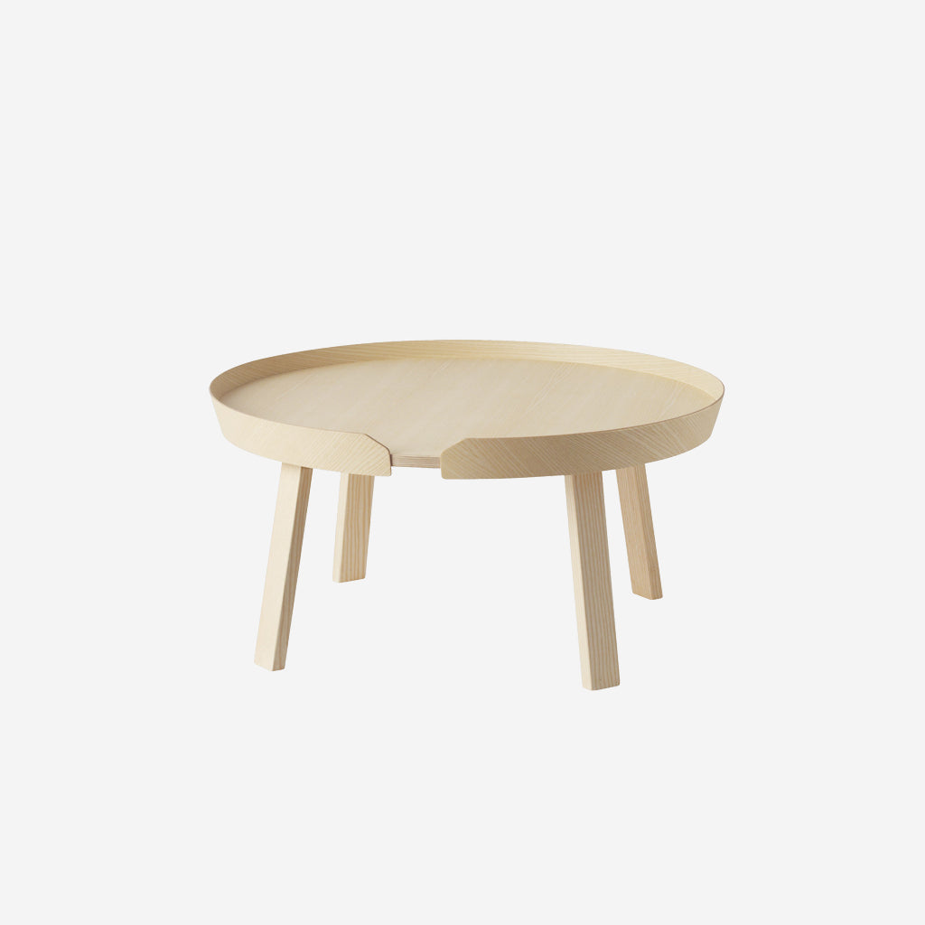 The Around Coffee Table brings a new perspective to its typology through the characterful wooden veneer frame that runs along the edge of the table, echoing the ideas of Scandinavian design. The wood is carefully cut, bent, blued and polished to create a unique table. The strong lacquered surface protects the table from the wear and tear or everyday use.