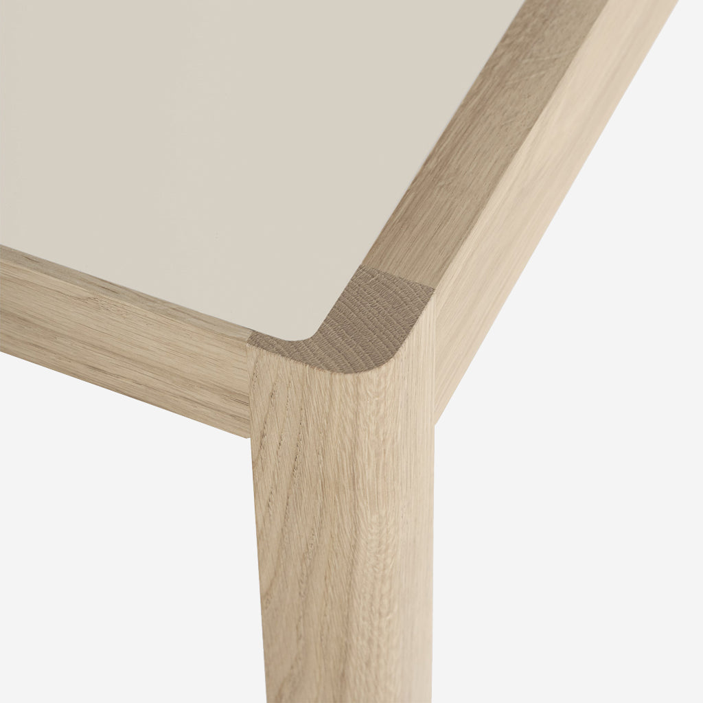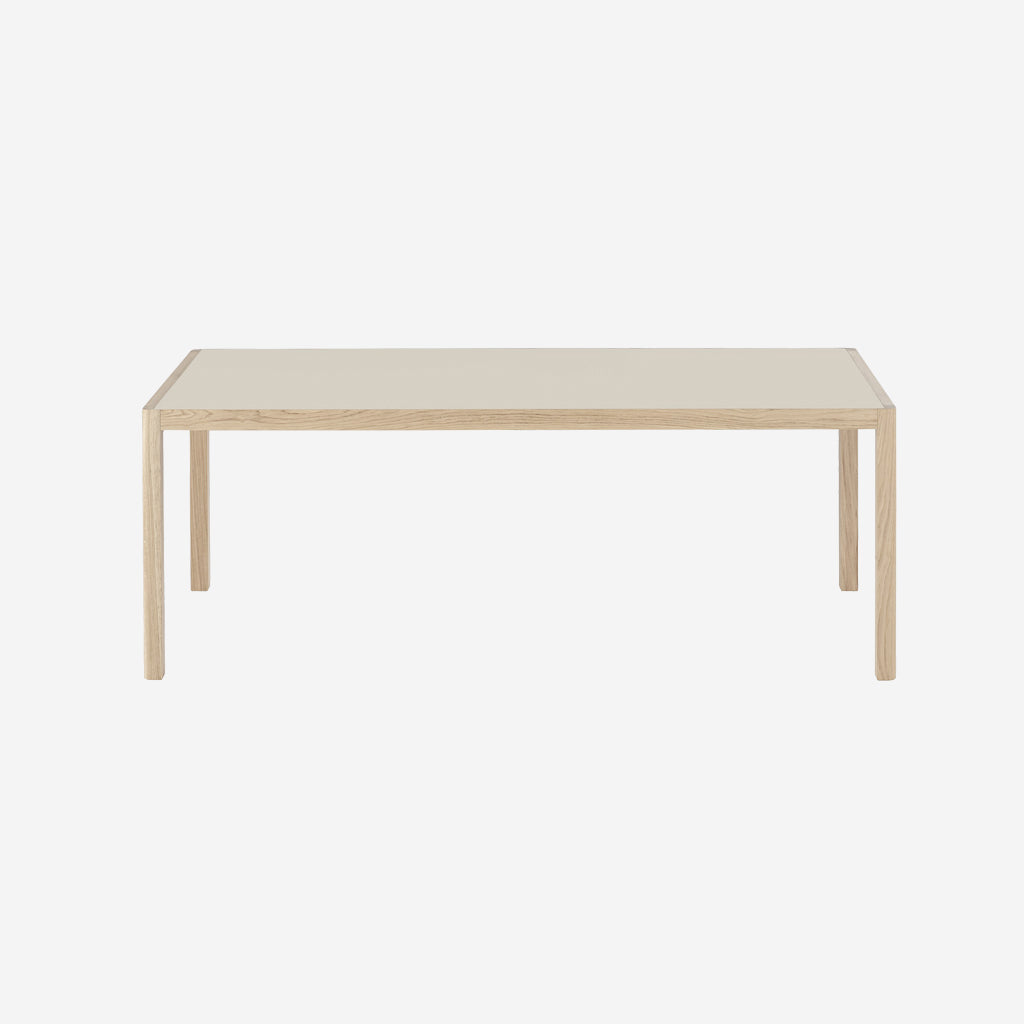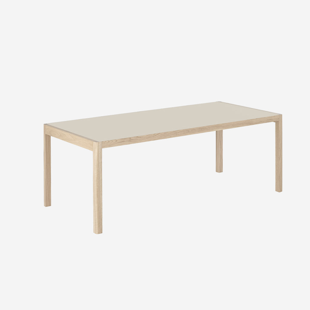 The Workshop Table joins together the ideals of Scandinavian craftsmanship and subtle detailing for a deliberately simple and archetypal expression. With its tabletop in either oak veneer or linoleum harmoniously carving itself into the solid oak frame, the Workshop Table brings a refined and understated appearance to any setting.