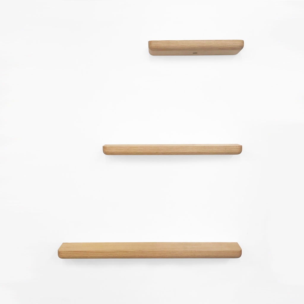 Best used for displaying small Objet d’art, these shelves have great versatility and can be placed in all those unusual and unexpected locations to provide an uncluttered elegance for your home. Features a symmetrical cambered leading edge allowing a clean line on the corners and emphasis on the fine grain of the timber. Keep it minimal without any visible bolts and screws.