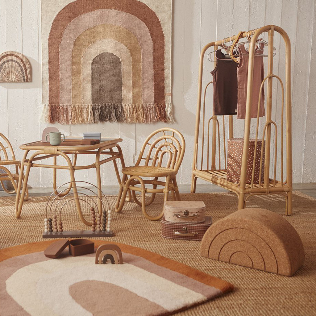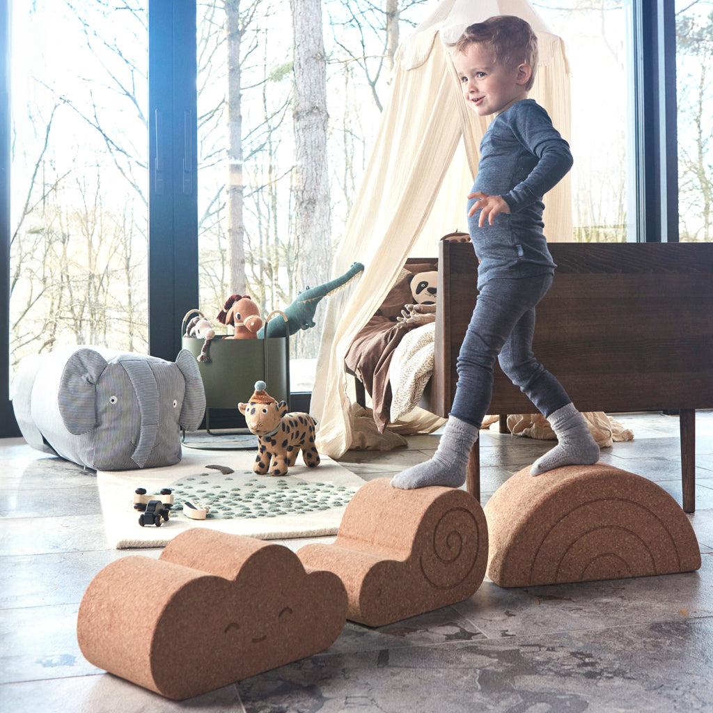 The Cork Rainbow is the perfect interior for the children's room. It is decorative with its cute design, but also functional, as it can act as a small stool for sitting during play.