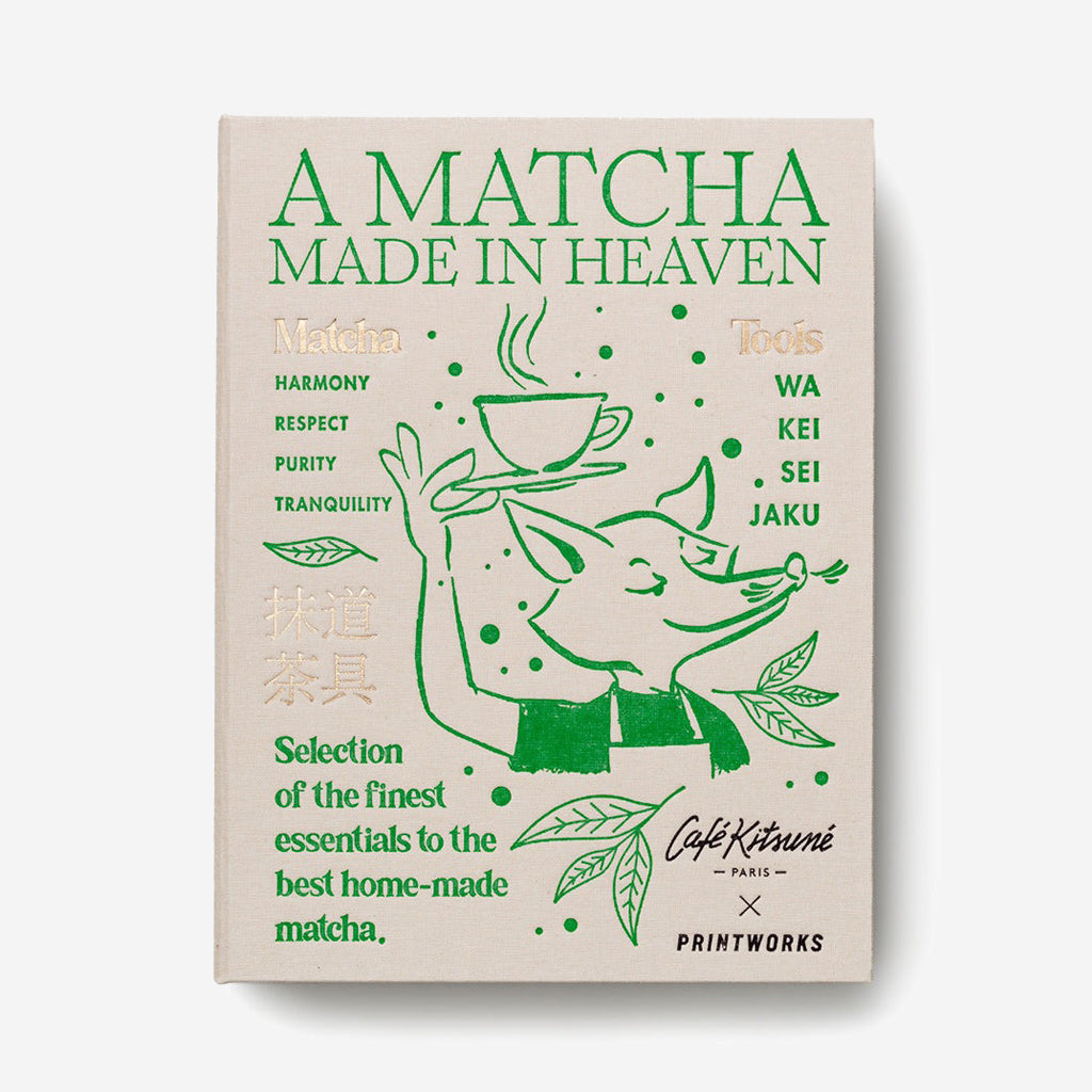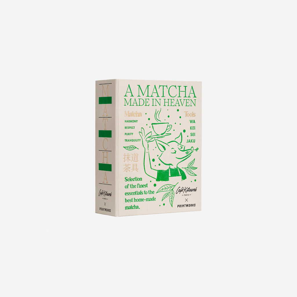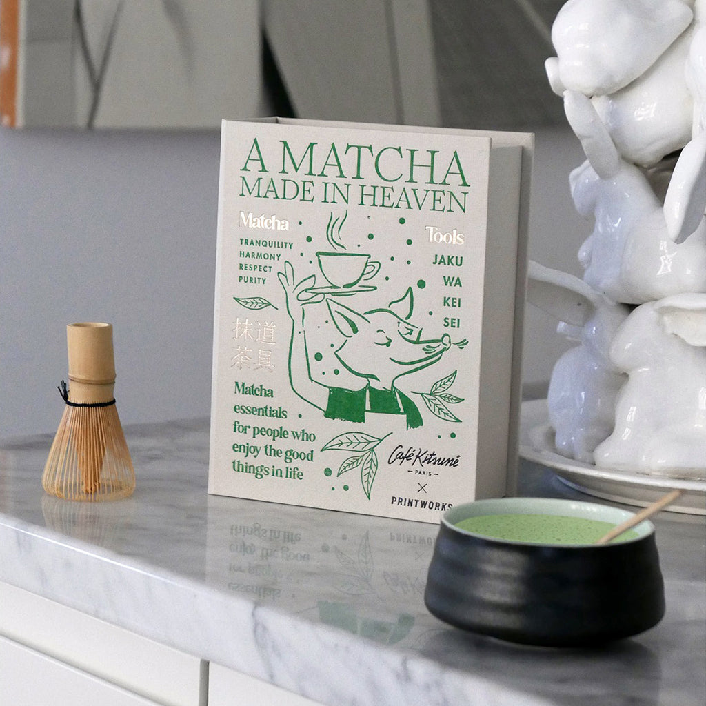 Discover the exclusive Matcha Kit, designed in collaboration with Café Kitsuné. Presented in an elegant, book-like box, this kit includes all the essential tools for creating the perfect matcha at home. By blending Café Kitsuné's knowledge of Japanese tea culture with PRINTWORKS' signature design aesthetic, this kit elevates your tea ritual with both beauty and functionality. A refined matcha experience, blending tradition with modern design.